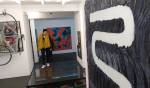 Exoplanet Dive Bar is Dan Pasteiner’s first solo exhibition at studio1.1. “The exhibition comprises paintings made of oil, acrylic, latex rubber, resin, pigments, enamel, gesso, permanent marker, elastic and hybrid polymer on/in Swiss polyester mesh framed in aluminium and rubber; a painting made of resin, pigments, hybrid polymer, inkjet print and gloss on panel framed in rubber and a sculpture made of thin-film solar panel, enamel and steel”.