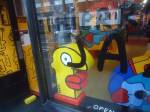 Street Artist Thierry Noir has been applying his (very) bright colour to the dull and dirty walls of various grey European cities for many years, his faces are all over London, and when he does take over a gallery, like his recent works that have filled the walls of East London’s Howard Griffin Gallery, the Shoreditch gallery that currently hoses the The Thierry Noir Museum, “a full scale and immersvie installation dedicated to the collected works of the iconic graphic artist Thierry Noir”, when he does take over a space he created a very bright world to escape in to. The Thierry Noir Museum is at Howard Griffin until the end of December, the gallery is saturated with his bright colour, his bold graphic shapes, his big child-like heads. not child-like in the way they are painted, child-like in terms of where they take us for that brief moment, that brief smile. If you haven’t been to Thierry’s museum yet then do take a moment to escape. of course the street is where the artist mostly works, and the point of this quick piece today is bring to your attention an interactive Google street Map thing Thierry Noir has created that helps you locate his colour, a Google map that marks the sites where you find all the existing pieces of Thierry Noir’s London street art pieces along with photos and brief informative notes from the artist about each piece…