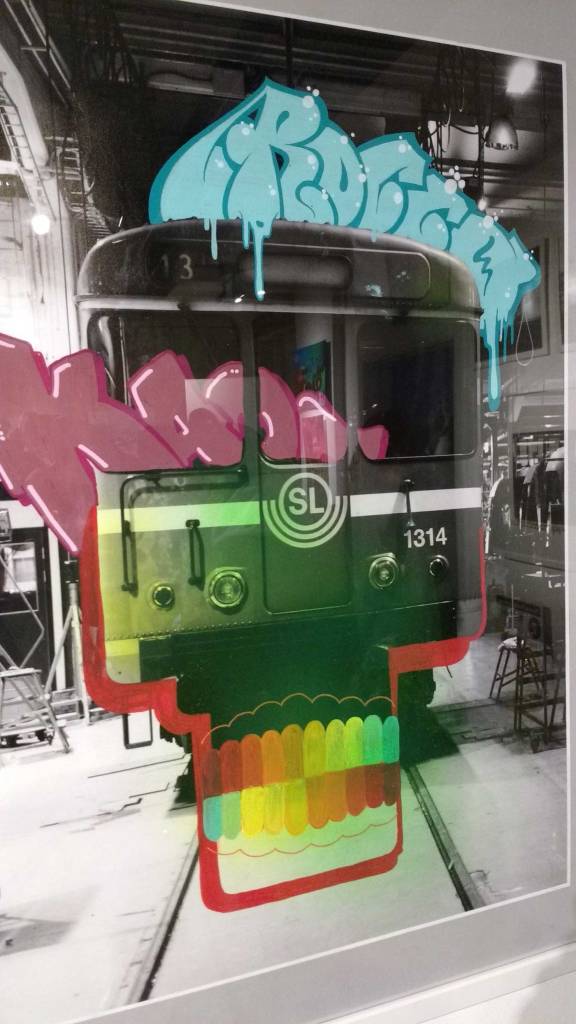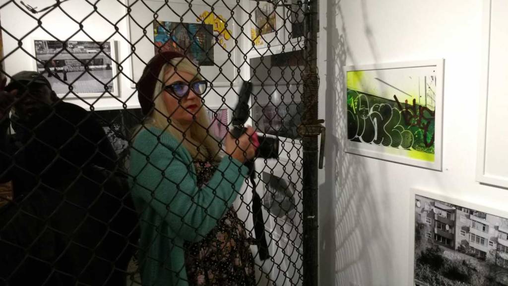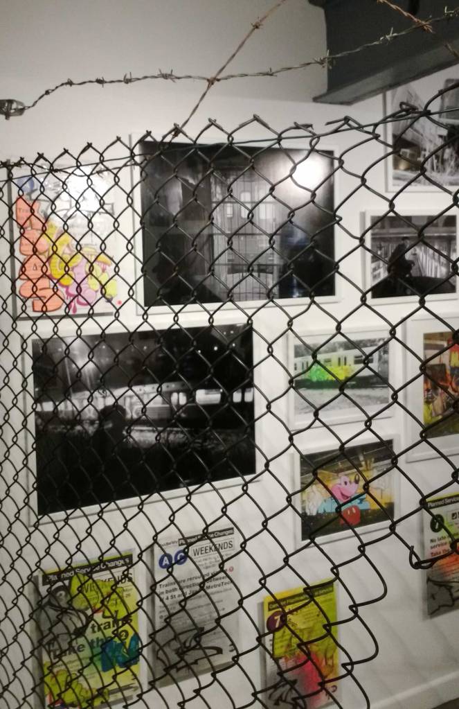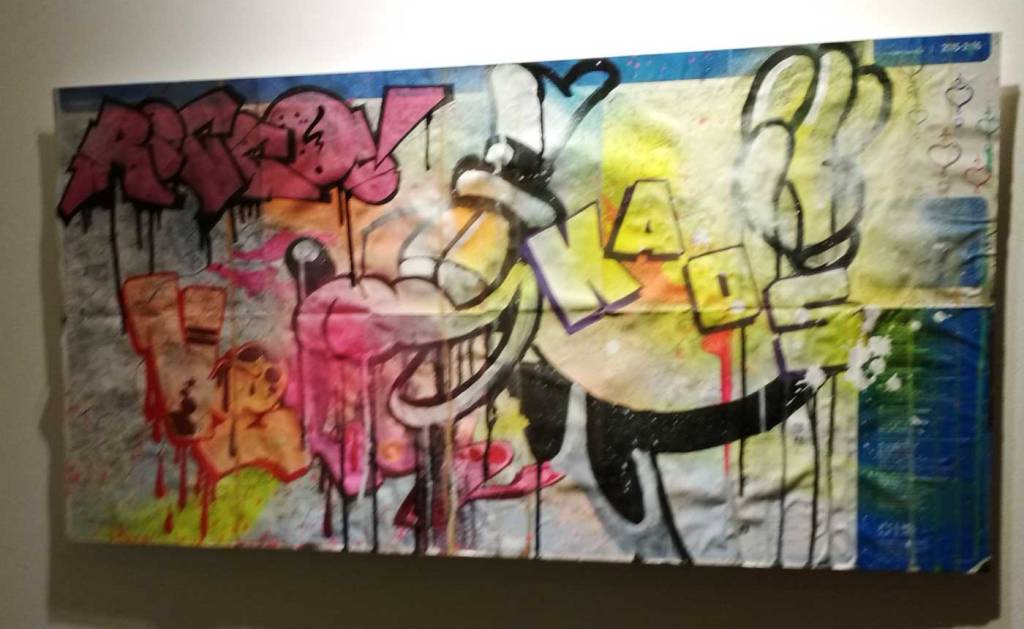 Of course a show like this is controversial, bloody vandals, look at the mess they make – not as messy as those gentrifiers ripping things down and lives apart – yes indeed, as with every inner-city artist, writer, (post woman, nurse, Clare Street car mechanic, train driver or shop worker) we’re fighting to survive in our cities. Gentrification and the destruction of communities, the destruction of people’s lives is an issue for almost every artist right now, the issue is taken on once again here – and anyway, while every inch of our cities, our transport systems and our daily lives are filled with corporate advertising and the “stuff” of officialdom, with huge street boards telling about the unaffordable homes replacing the ones we they tore down, the ones we lived in, worked in, painted in. When you can’t move for “buy this fizzy brown sugar-based drink” advertising or a billboard for the latest penis-shaped car or that new thingy or that perfume you need or cheese-burger you’re not cool if you don’t consume – when every wall and space is an advertising hoarding relentlessly marketing at you non-stop, relentlessly pecking away at your soul – buy stuff, consume, obey, don’t do this, so do that, consume some more, don’t ask questions, buy more things – when all that “stuff” is cluttering up every inner-city sight-line, constantly bombarding your senses with the “things” you are told you must consume – when all that is happening on our streets then bring on the street artists, the graff writers, bring on the vandals, bring on the creativity, the colour, the lifeblood of doing things rather than just consuming things. These advertisers, the stuff-pushers, the estate agents, they’re the vandals to worry about, the developers and marketers who don’t have to live this the cities they vandalise and don’t give two hoots about the people who live in the cities, the people they treat with such contempt…. Of course a show like this is controversial, a gallery celebrating lawless vandalism, brilliant, bring it on!