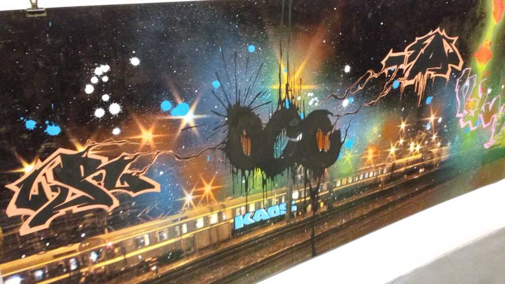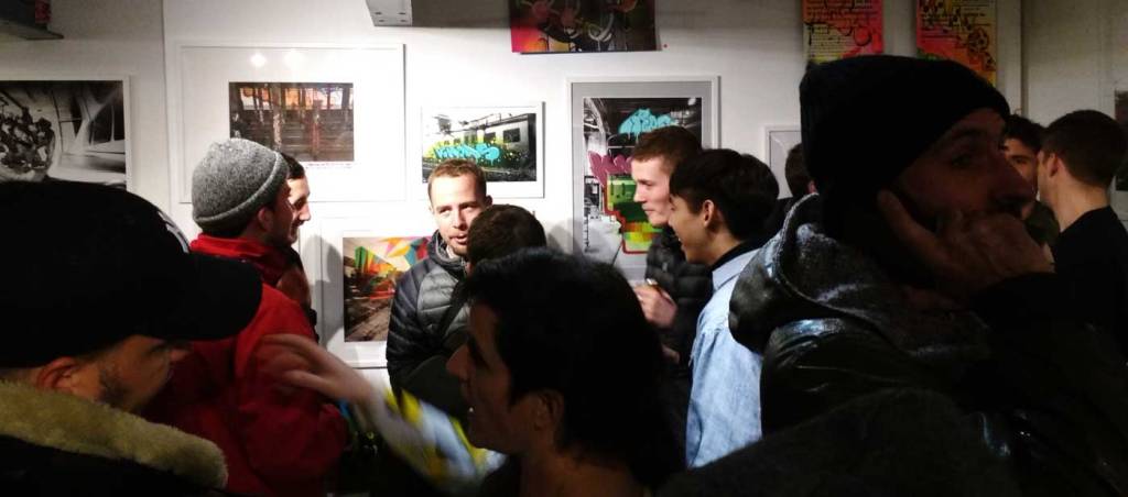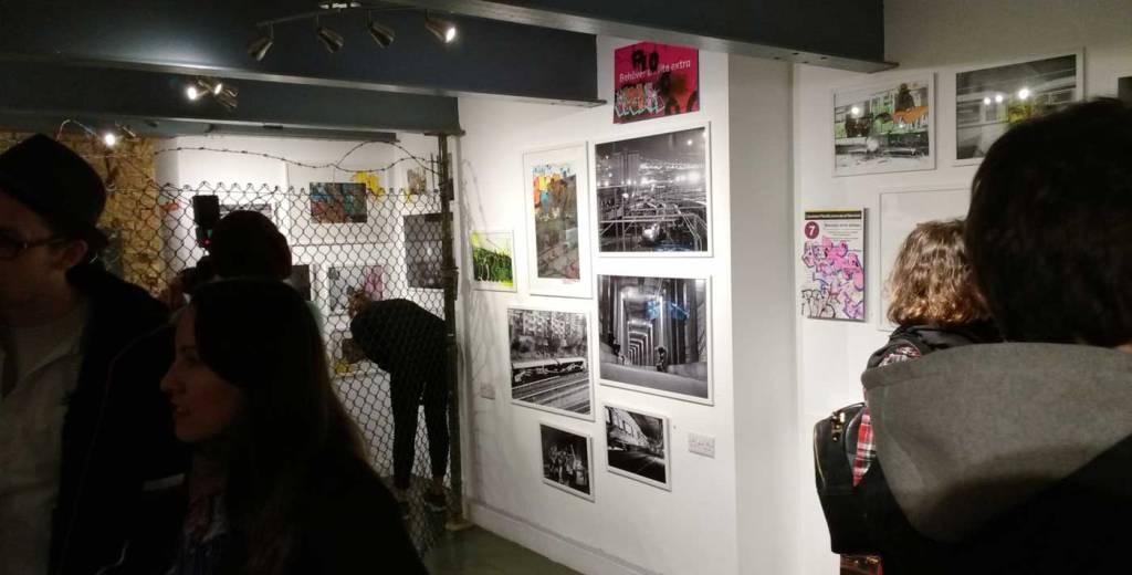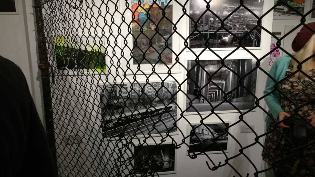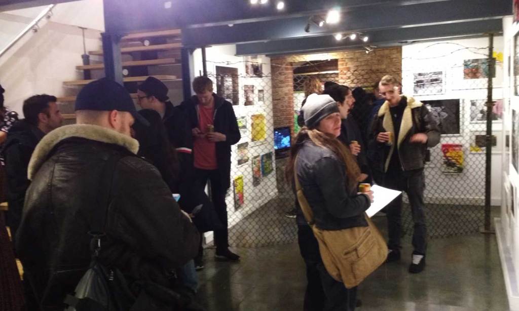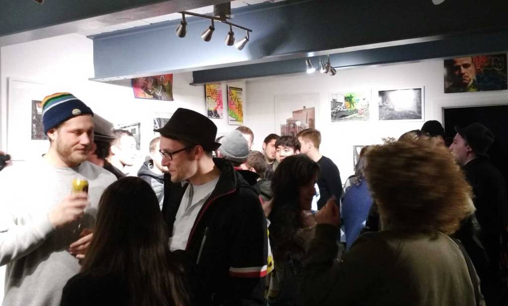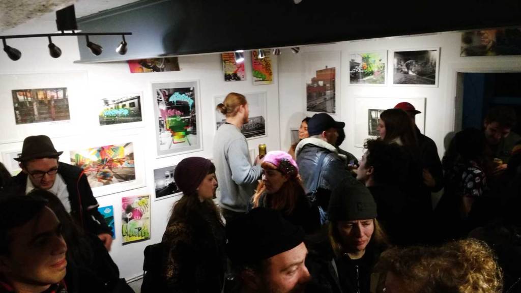 The November rain is pouring down, the wind is blowing hard, this is not a Saturday night to venture out unless you really have to, but the North East London basement space known as BSMT Space is packed once more. Another packed opening night in the Dalston gallery, this time for a show called The Right Side of The Tracks and three artists coming together in London to celebrate the act of just getting out there and doing it. There’s no print release or limited edition this that or the other, there’s no glossy coffee-table street art book to sign or any of the usual paraphernalia that comes along when the various strands of street art or graff culture take to the gallery. No bullshit tonight then, just three artists and their friends coming together and a celebration of several of the ever evolving strands of urban street culture, street art and graff-flavoured goodness on the edges of Hackney. on a Saturday night….