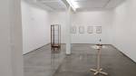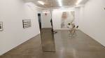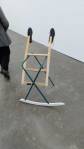 Down the other end of the street, the imaginatively named Herald Street Gallery can be found, well we think it can, we know the space is here somewhere, supposed to be at number 2 but all there is is a roll down garage door with “no parking” painted on the front – the side door is open, is the gallery in this garage? The only clue is a pile of empty beer bottles stacked in the corner that hint that there may have been a gallery opening somewhere in here recently? Shall we try this door? No sign of a sign, no indication, there’s a cat over there, no hint of human life? Apparently the gallery has been hiding here for over ten years, don’t ask me how all this works, someone suggests part of the fun is trying to find these damn places and I should stop being so grumpy about the elitism of galleries and their apparent reluctance to engage with people.. The Herald St gallery is hosting Tanya Leighton & The Modern Institute as their part of Condo, and yes it is beyond the closed unmarked door inside the garage (we could so easily have been pushing open a door and waling in to a drug deal or Tony two-doors offloading some old bed, could have been anything, thankfully we’ve found the gallery – “The Modern Institute is a contemporary art gallery founded in Glasgow in 1998”, while the Tanya Leighton Gallery is from Berlin, they’re sharing the one room East London space and once again information is thin on the ground but hey, this is more like it! Something good in here, at last! A decent art show, Condo has finally delivered! There’s a playfulness with Amalia Pica’s “Catachresis ♯69 – Head of the broccoli and elbow of the pipe” – found materials apparently, did she find the broccoli? Playful? No, this is not playful, this is good, the three sided mirror in the middle of the gallery plays all kinds of games with the viewer (maybe it is playful?), the set of i-phone headphones are inspired, “PC Sirens” (the work of Sam Anderson) as are the gang of projectors on the floor – this show is a delight, this is a little nearer to the cutting edge we were hoping for, this is more like what we were expecting. :Martin Boyce’s “Same Place as Always” is beautiful, the whole show uses the space beautifully, there’s work from Sam Anderson, Martin Boyce, Pavel Büchler, Robert and Trix Haussmann, Bruce McLean, Amalia Pica and Pádraig Timoney (or at least I think there is, information is thin on the ground). Rather like this show, rather like this space, starting to kind of like the way it was hidden and took a little bit of exploring to find – love those projectors talking to each other on the floor over there…
