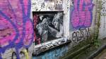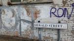 Shall we make our way over to Herald Street then? Condo isn’t exiting us much so far, there is something posrrive to be said about these shared events and galleries uniting but we haven’t found the promised cutting edge quite yet. On we go, there’s a couple of galleries hiding down the back street beyond the organic layers of graff and the colours battling colours in that way that one writer tagging (working?) by his or herself could never come up with, that unplanned overlapping of that pink tag there next to the blue and silver bit of graff and that accidental bit of texture and those signs on that closed down building.