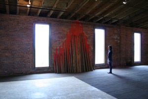 3: Artist: SILVIA LERIN, Title: Vertical Lava (Installation, 2013). Medium: Acrylic on canvas and wood. Size.335x269x70cm