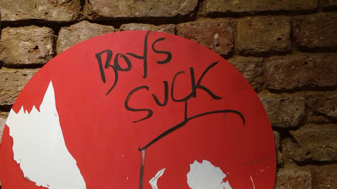 50: EMMA HARVEY detail of paintings at Cultivate’s Debased show at BSMT Space, 2016