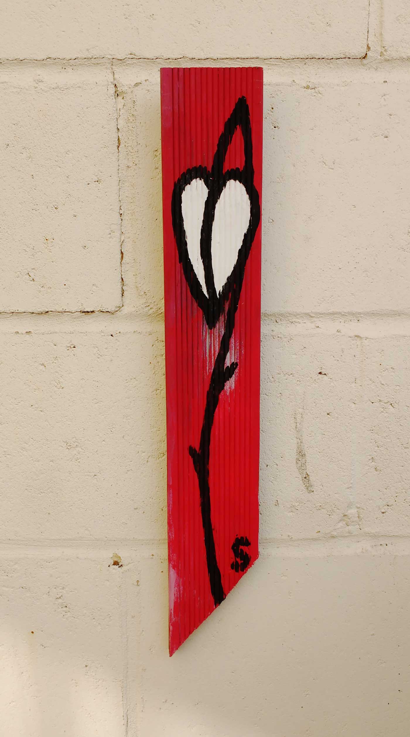 61: Artist: SEAN WORRALL. Title: Fresh Growth, Acrylic on found wood, Feb 2017. 55cm x 9cm