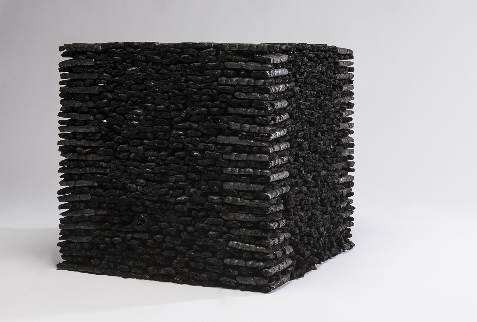 117: Artist: LUCINDA BURGESS, Title: For Milarepa (2013), Medium: Charred wood Size: 55 x 55 x 55cm