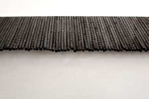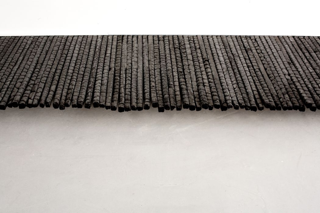 120: Artist: LUCINDA BURGESS, Title: Redwood (2014). Medium, Charred redwood, aluminium, Size 210 x 70 x 1.5cm (raised off floor 15cm)