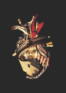 124: Artist: LIDWINE TITLI, Title: Metal Heart: Medium: Original collage, Size: 41x59cm
