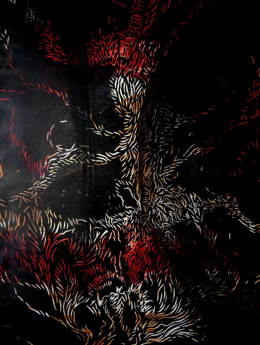 150: Artist: SAMUEL LEE, Title: Divorce in Darkness (2016) Medium: monoprint woodcut, size: 55 x 75 cm.