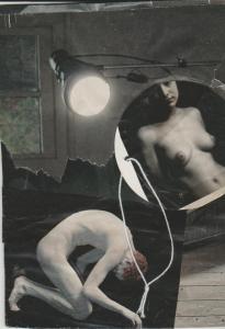 155: Artist: SUSAN PLOVER, Title: Black (2016). Medium: Mixed media collage with string. Size 13 x 17.5cms