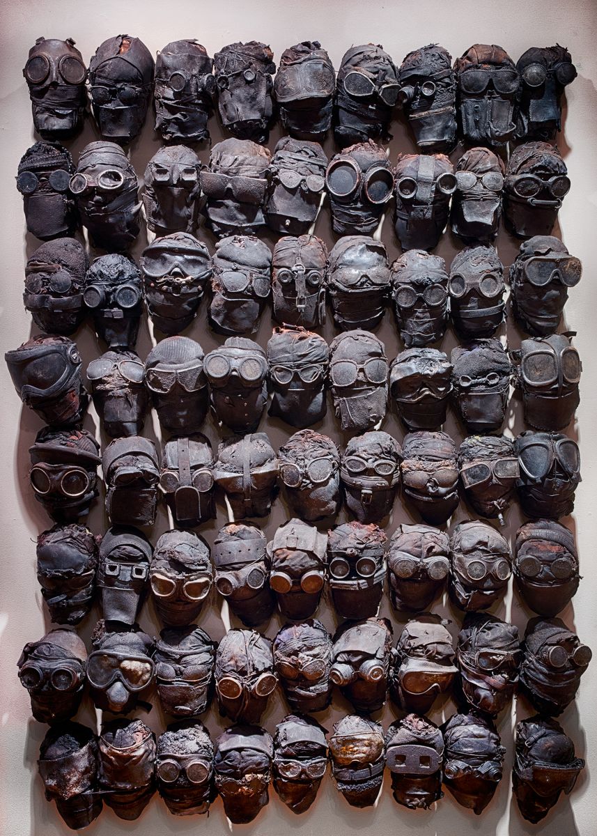 48: Artist: RONALD GONZALEZ, Title: Blind Seers (2016). Medium: Cloth, Found objects, leather, wax, wire metal filings, carbon, Size 8’x7’x7′