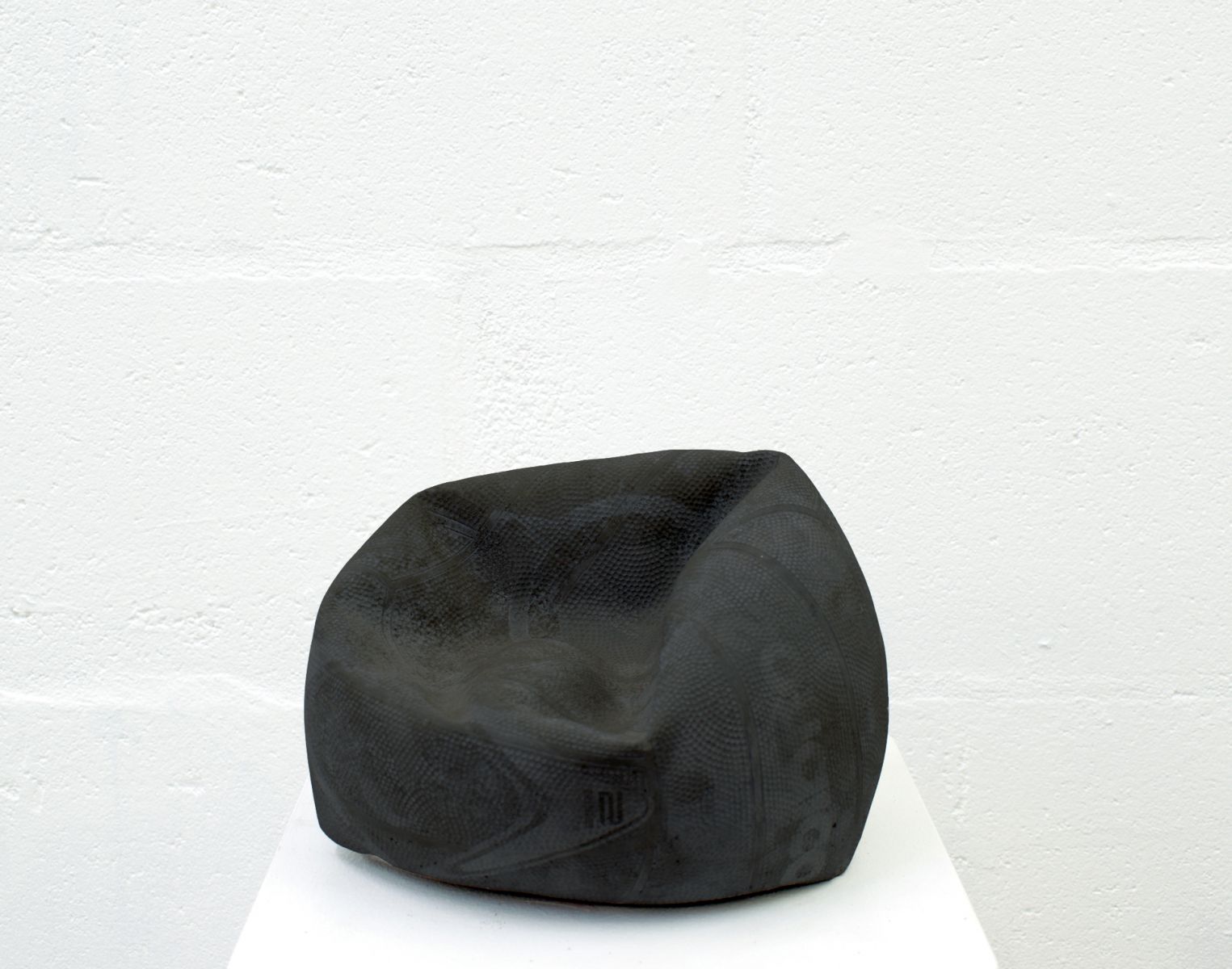 50: Artist: ROBERT DAVIS, Title: Stone No.4 (2016). Medium Concrete cast of a deflated football coloured with black pigment, Size 25 x 25 x25