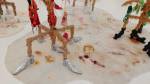 Athena Papadopoulos is an exciting artist, an intriguing artist, the Canadian born twenty-something is currently based in London, she’s been exhibiting her rather striking work all over the globe for the last few years, she ‘s an artist who excites, been rather looking forward to this show. Not so flesh coloured this time, instantly engaging once you do work out how to get inside (and shift the smoking chefs of the doorstep so we can get in, they had no idea the door was in use or that there was an art gallery there either).