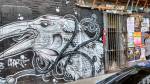 Off to the first of the evening openings then, this is not the time to head back to the pub, we’re only five hours in and there’s more exploring to be done, the last gallery left standing down Vyner Street is calling, Head past another distinctive Aida Wilde print pasted up on the wall and it is a rather depressingly void down the now very sanitized coffee shop polluted Vyner Street now, if ever a street had the life gentrified out of it no, let’s not go there again, hard to believe this place was once so alive with people and art, you know the history by now….