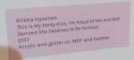 Not sure about the “controversial” bit, not sure how “subversive” this is and well, another week, and yet another all female art show. it might not be that “subversive”but there is some good art to be seen in here – Rikki Hyvonen’s three-dimensional wall piece, is it a kiss or a bruise? And Alice Steffen’s thicket of Barbie shoes stands out a little. The overly slick-looking show does feel like it might be full of lot of things we might have seen somewhere before though. Jess De Wahls embroidered bits of spam can that could easily be from a Lucy Sparrow sex shop and it maybe isn’t as “controversial” as they’d like us to say it is. Did the hype have us maybe hoping for a little more? It is hard for art to look anything but over-slick in this space, nothing that controversial or indeed that dangerous, well worth a look if you happen to be passing though. Brains and Lip runs at Hix Art, in the basement, under the restaurant, until May 28th.