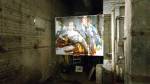 So after all the walking around the block and the searching and the looking in places that might be hiding the show, that and the web searches and the phone calls we finally find the space, or at least we think we do, we’ve walked past it a couple of times already and we’re close to giving up and going for a pint instead, by the time we’ve gone through all that and then gone down to the unmarked basement in the vague hope of finding the damn space and the show that we’re fast losing enthusiasm for – and then encountering the rather unfriendly attitude when we ask about the lack of any kind of sign or indication in response to their “do you have any questions guys?” question and then being told to “relax guys it’s about being cool and discovering it for yourselves” – what kind of bullshit is that?! By the time we’ve gone through all that, (and then almost fallen in to the rather dangerously unmarked pit full of filthy black oily water in the darkness), by the time we’ve gone through all that we’re really not in the right frame of mind for art, which is a damn shame because this is a rather good-looking art show.