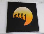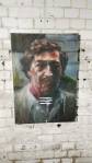 Yes, this is a really good-looking show, an exciting show, a beautifully hung show, some really strong art – a label or two on the art might have been good, a clue in terms of who have painted what? Hey, enough moaning, don’t know who’s painted what, well some we recognise and some we don’t, some we’d like to know about but we don’t really feel like asking another question and getting some more attitude in return – this is a damn fine show though – I guess you’d call it urban art, street art, but some of this would not be out of place in a high-end contemporary gallery (some of it would be out of place). whatever you want to call it there’s some strong impressive art down here in the basement and the industrial fallout and the holes in the walls. Some damn fine contemporary art, some excellent painting, the obligatory bit of neon, I guess some people like it, really have seen enough neon in art galleries now. Those small squares over there are rather impressive (wonder who did them, label the art!), those big paintings over there are impressive – the artists involved are Pang, Skan, Citizenkane, Stefano Ronchi, Pakal, Alaniz, Oko, Gabriel Bodin, Helen Bur, Wasp Elder, Olivia Descampe, Diego Zelaya, Otto Schade – and yes, a rather impressive show, well hung, especially the bit in the basement down in the industrial grime and the dirt and the oil (besides that damn black hell-pit I didn’t see, how deep was that!?), the room upstairs isn’t quite so exciting in terms of the hang, it is in terms of the art.