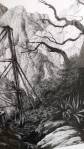 I love the work of Delores de Sade, I make no secret of it, first came across her at one of those open studio events a couple of years ago, she been travelling for the last eighteen months, drawing her way through residencies in Tokyo, Chiangmai and the open space of California, her show Strange Lands is some of what she brought back, landscapes, reactions, layers, the vastness of desert, the closeness of jungle, a rewarding set of adventures – rewarding for us as viewers, for us exploring her exploring, for exploring her reporting back from strange lands, her beautiful prints, her strange things standing on white plinths, flavours you just wouldn’t get from the observations of others, there’s always something rewarding to be found in the delightful work of Delores de Sade wherever she might have been. Always pleasing to see her work and this considerately hung show really does add to pleasure. Everything can breathe in here, the temptation to show too much has been resisted, that rock is wonderful, those lines in those black and white prints, those places others wouldn’t notice