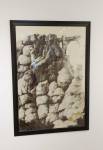 – It is an exercise in stating the obvious really, but the work of Delores De Sade, rather like the beautiful prints of Norman Ackroyd (that we’re rather looking forward to seeing again at his new show at Eames Gallery down in Bermondsey in a couple of weeks), really can’t be photographed. You simply can’t really convey the beauty to be found almost hiding in those very fine lines via photos on a website. The art of Delores De Sade, the strong detail, the intricate delight really can’t be photographed, the photos of the beauty to be found in the art of her latest solo show really isn’t going to convey or, I suspect, make an impression. The photos of the art posted here (or elsewhere on line) really won’t explain the magic of her art, you really really do need to see the pieces and experience it all first hand. And yes, I know you could argue that to be the case with the art of almost every artist but you can convey some of what an expansive painter is about via photographs posted on-line, you can convey what excited you about an installation in the corner of an old building or a fresh piece from a street artist or the work of a thrilling sculptor or textile designer, but these rather exquisite prints and etchings are something you really can’t convey, you do really really need to be there yourself, to be up close and personal, to be there with her art and experiencing some of what she experienced herself, you do really need to quietly drink it all in in the silent intimacy of a white-walled gallery. Your nose needs to be right there in front of the pieces a couple of inches in front of the glass, just you and the lines, the textures, the paper, the details and the treats to be found in that tiny detail of the darkness or in the weight of that print of the suspended rock or those beautiful shapes that reveal so much.