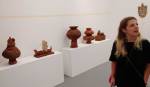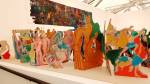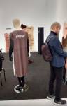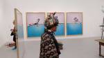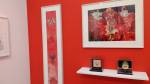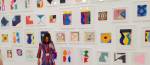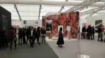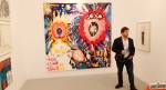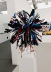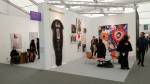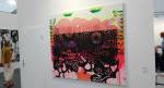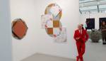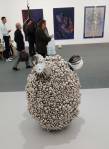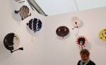 There’s mile after mile of art in here, things jump out, the Judith Bernstein paintings, those shirts of Eric N.Mack, well not really shirts, that piece of art and the painted fabric of Eric N.Mack is a little more than just a rail of shirts – occasionally the gate keepers do let something though – Emma Hart ceramic television satellite dishes (shown by London’s Sunday Painter gallery), Emalin Gallery‘s mouth has a bit of wit about it, as does the semi-playful ceramic work of Russian artist Evgeny Antufeiev – Emalin are one of the more interesting of the signless London galleries of recent times (there’s a rather interesting Nicholas Cheveldave show in their Shoreditch space right now if you can work out where the door is). The Haegue Yang geometric piece stands out as you wander on down the busy streets and past booth after booth, although the stylish man in the red suit might have helped bring out the colours in that particular piece of art…