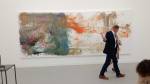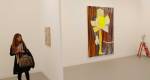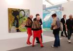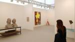 Already busy in here, we did get here early, Frieze is vast, Fieze is busy,… Men in suits, expensive suits, never a tie, can’t have a tie, rebellious open collar, never a tie, all these men rebellious men without their ties, tie-less men running their gallery spaces, tie-less men and well dressed women, their assistants hanging about…. Piles of books, big piles of books, big books, piles of big art books on every desk, what’s with the books? White booths full of art, plenty of space, the art isn’t crowded, they set it out well, lots of space in here.