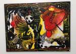 Besides the Sex Work thing and especially the glorious everything of Dorothy Iannone, besides the whole brilliant Sex Work thing, besides that, the truly good and the occasionally exciting, Frieze 2017 really is swamped by the somewhat underwhelming, the feeling at the end of day one’s exploring is a feeling of is that it? Is that really it? But it is worth it, it is worth seeing what they have to offer, what the gate keepers and their premier league galleries have for us, it is worth exploring, it is worth it just see that occasional something like the big Thomas Scheibitz flower or the Mack shirt piece or those Emma Hart pieces or that very bright Eddie Peake painting – you start to go a little art-blind in the end, three and a bit hours in and you’ve had enough, you start to think about how you might argue for Hirst and his wheel, you start to lose focus, you start to think about how you’d maybe like to eat and you know you can’t afford to eat anything in here, you start to think about how the whole thing might be one great big giant hoax, one great big performance piece, how this surely can’t be real? You start to get just a little bit angry, you start to lose that excited buzz you arrived with, you start to think it might be time to call an end to day one and go have a pint or better still, go throw some paint at a canvas. one last look at that Thomas Scheibitz painting just to leave on a positive note, we’ll be back tomorrow, we’ll be back with more words, we’re bound to have missed something on day one, Frieze is vast, we’ll probably be back with one of those cheesy best ten things we saw at Frieze lists that the internet demands, did kind of enjoy day one, the Sex Work thing and one or two really good pieces made it all more than worthwhile… (sw)