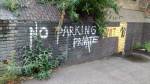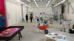 Oh look, the policy on these pages is to only really cover things when we have something positive to say, only when we’re engaged and excited about the art we’re covering. True there’s one or two pieces in here that catch the eye, Sara Berman‘s “in There Somewhere” painting certainly stands out, Diego Gomez has some interesting work on the walls, there;s one or two interesting (not very clearly labeled) paintings in the PIY Paintlounge, rather telling that the piece of graff that’s survived the cleanse at the end of the now very black arches kind of stands out a makes a little bit of a point in terms of the art to be found, as does the four letter work followed by an “off” scrawled in spray paint on the wall opposite the arches (possibly from one of the vacating now unemployed car mechanics?). The Post Student Art School installation in one of the arches as a touch of stylish wit, although the whole event does have the hint of art student about it. The artists on the whole don’t seem that bothered about the former occupants of the arches whe nquestioned about it (really don’t think I would have wanted ot hang a piece of art in here under the circunstances). There’s a whole load of performance artists (we assume that’s what they are) wandering around dressed in neon pink, not sure what they’re doing?