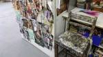 And on goes the exploring of the warrens, further down the corridor Dan Turner is documenting travelers, Roma, the social history, persecution, he’s making art with traveler imagery,with gypsy flavours, he paints his own traveler family as religious icons, the well-worn cart wheels in the corner of his studio are fascinating as is some of documentation he’s collected. he thanks us for taking an interest, it takes an age to answer questions, he has us wanting to see more of his work and world….