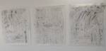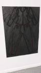 Sean Dawson‘s painterly textures and rhythms, his processes, his rubbing down of the paint and canvas, his taking one step back to move his big paintings two steps forward are exciting – he’s a London-based artist who mostly exhibits in Germany, we talk about the closed gallery system here in London, something we’re hearing again and again from the artists here and elsewhere in the city – frustrations with the way the gallery system works here in London and how London-based artists can’t get a foot in..Getting to see Sean’s working process, his excellent (working) drawings, his rhythm and his thinking space is all revealing, his work in progress is something you really wouldn’t usually get to see if you just encountered his work on a gallery wall – this is why open studios are so rewarding, so worth your time – his spatial ambiguity, his layers, his peeling back of layers (and his talk of black metal and German industrial music that kind of fits in with his oil paint and his darker colour range), you just don’t get this kind of insight when you visit a cold white cube and just see the finished work hanging there. You could argue that sometimes it might be best not to see, that sometime the knowing reveals too much, that seeing the work in progress might take away something? On the whole the seeing is a good thing, certainly is here.