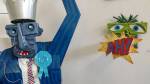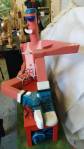 Kevin Harrison has some wonderfully playful sculpture, a cave full of colourful adventure, actually, as playful as it is, that’s not the right word – to just call his work playful is to do it an injustice, it is wonderful fun though, refreshingly so, “playful” is to throwaway, it does make you smile, it makes everyone coming in smile, how could it not make anyone smile? He’s alive with tales and talk of his pieces, of people, of places, of the responses to his attempts to get on to that fourth plinth in Trafalgar Square, he quotes anarchist publications, he happily explains work to people, he talks of London and life and being an artist and the changing cityscape – “Kevin is an established British artist, many of his public sculptures can be seen around the East End of London. He often initiates workshops for school children, two celebrated examples of these workshops are; the Human Rights Project in Johannesburg, where he helped local township children discover their own artistic talent, and also (travelling with Nick Treadwell) the Al Ain Flower Festival in the UAE, where along with the Arabic children of the town, he built a fantastic wooden flower garden, in the local Park”, impossible not to like Kevin and his work, far far more than playful fun. .