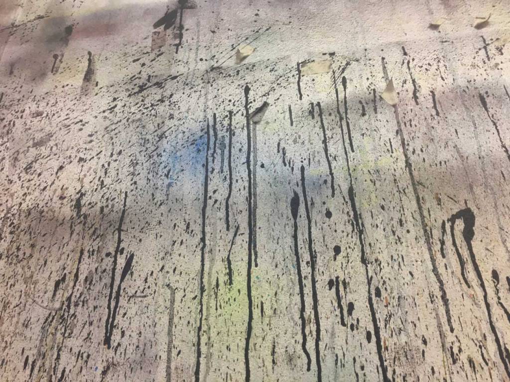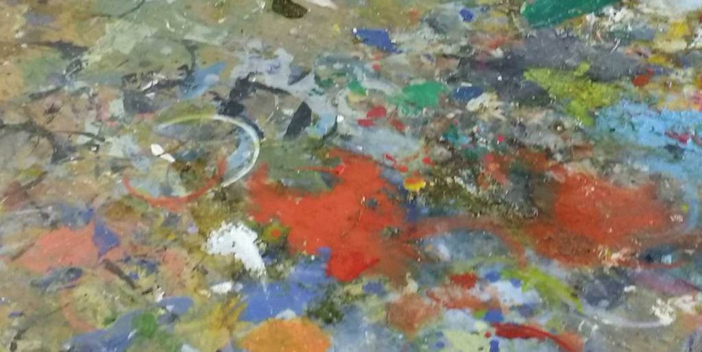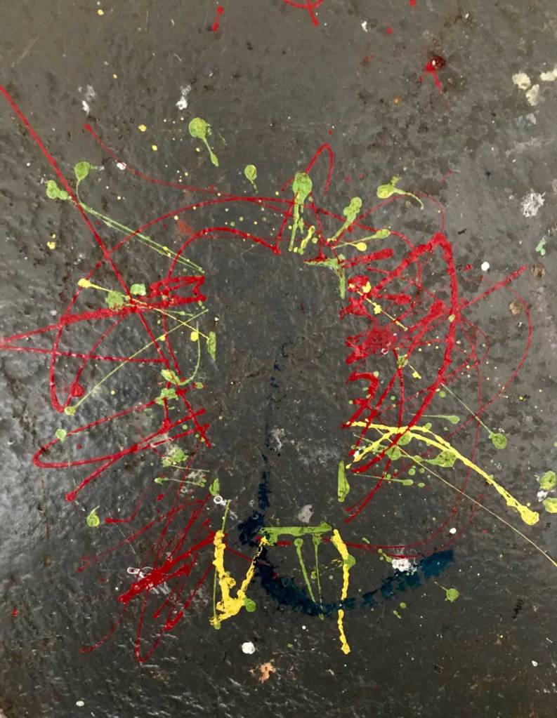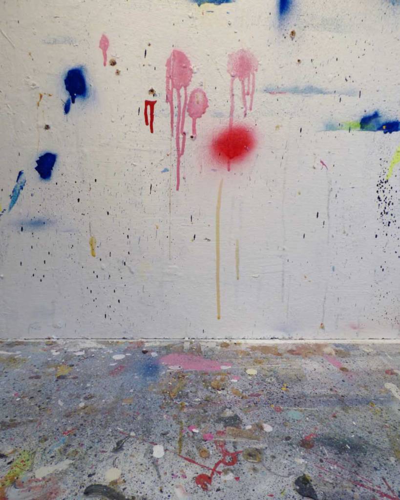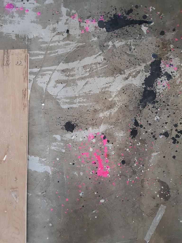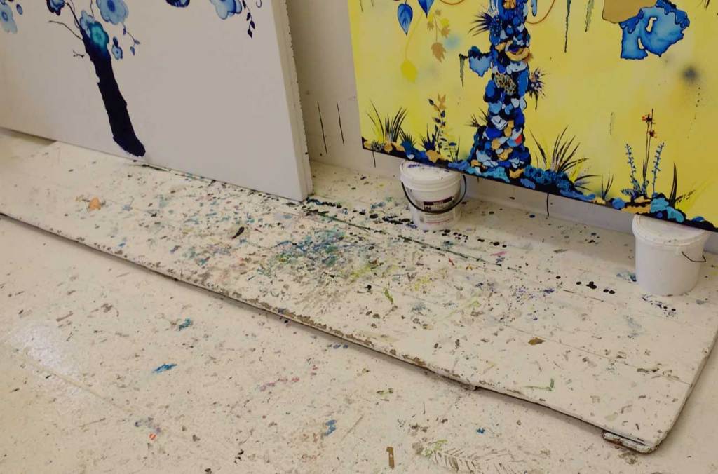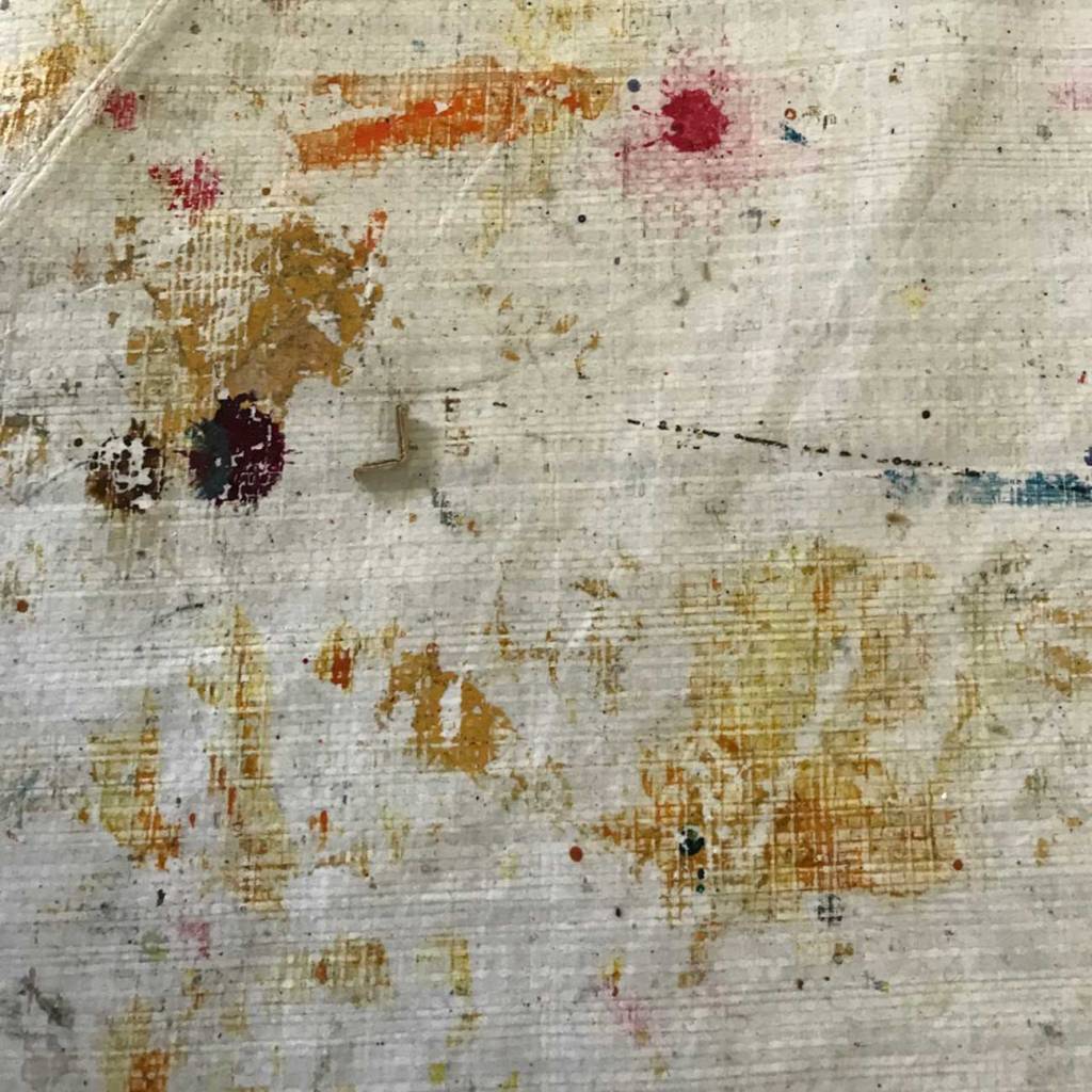 80: JOANNA GEORGIADES – “This is my old studio floor back when I splashed paint around making abstracts. I liked it more than I did my paintings and tried unsuccessfully to recreate it on canvas a few times!”