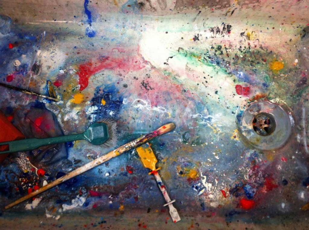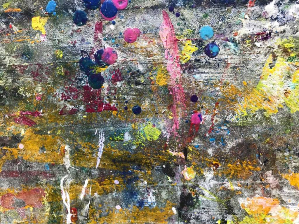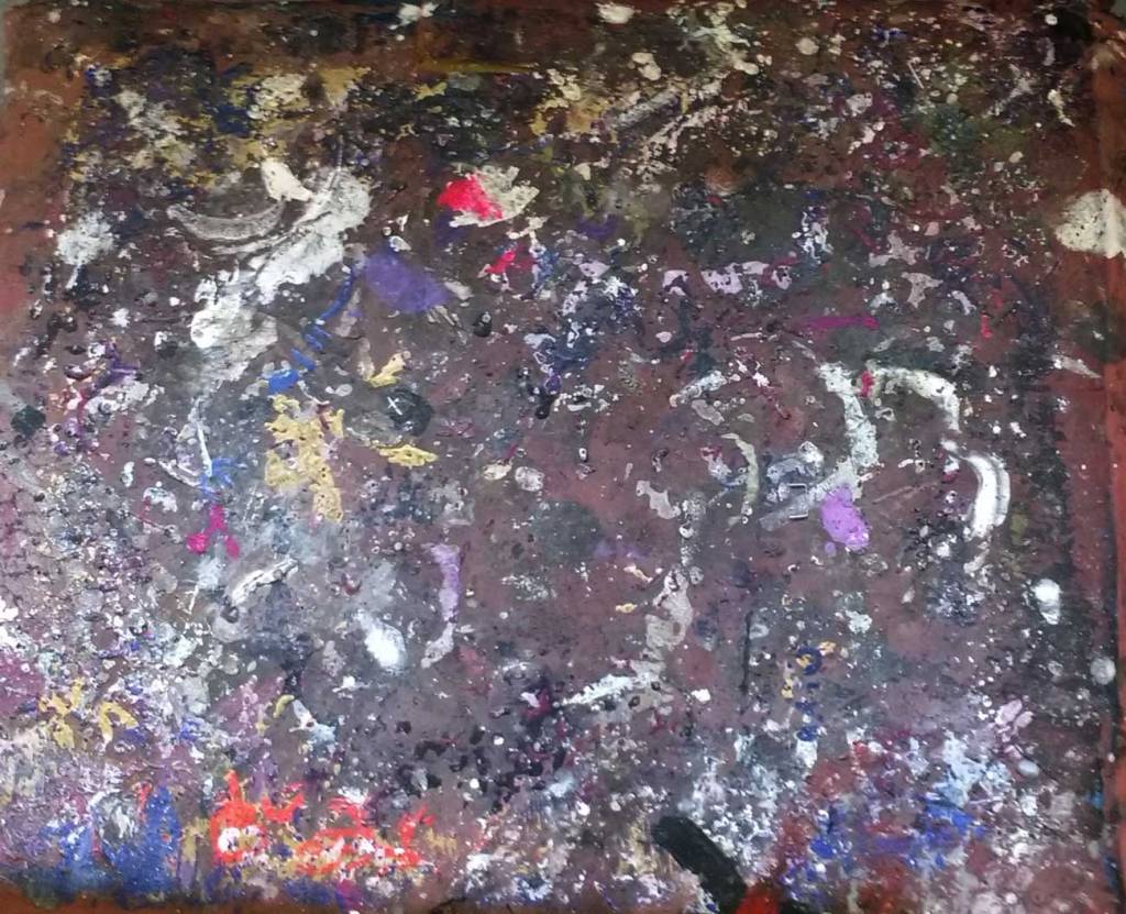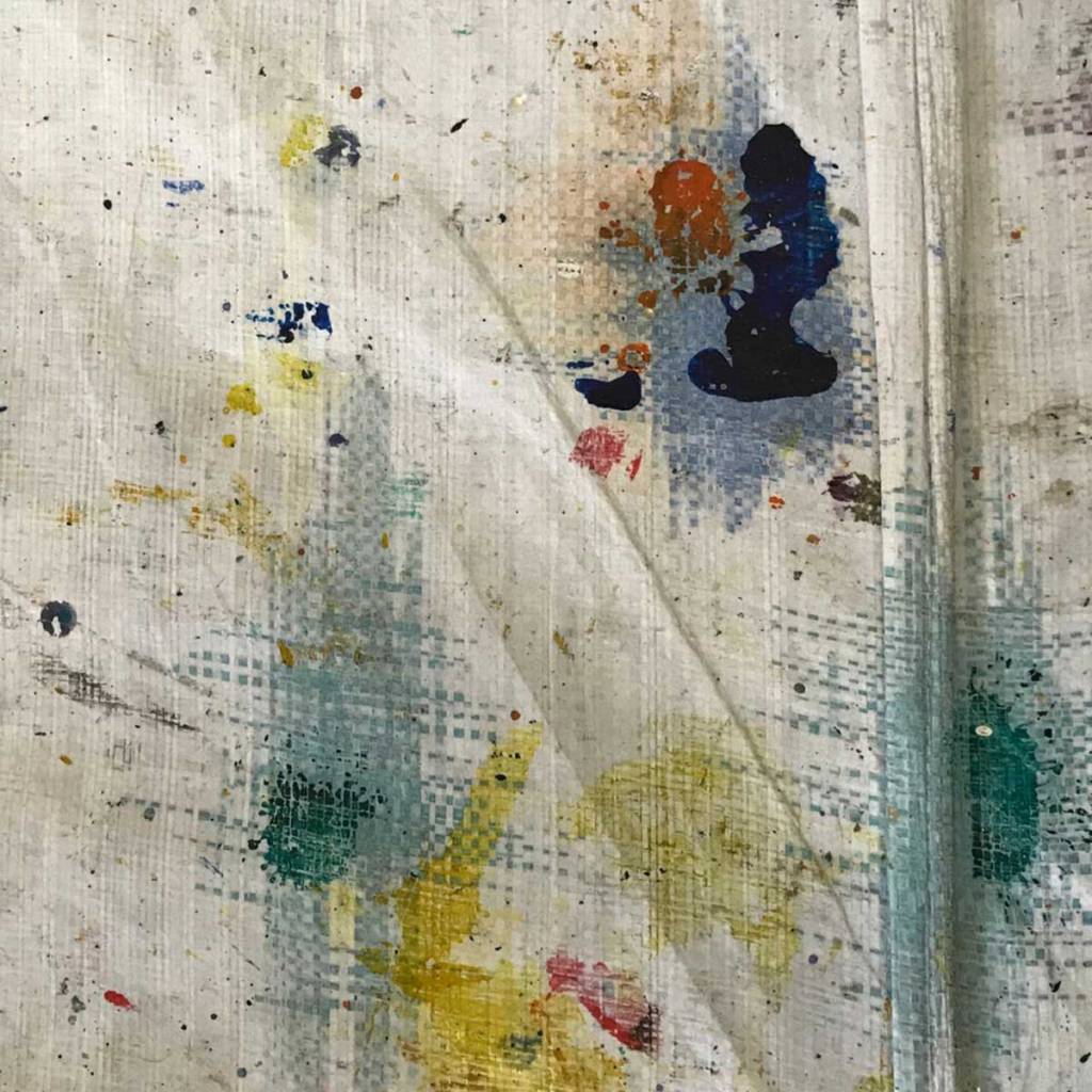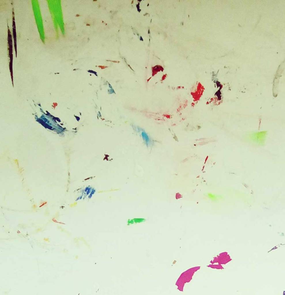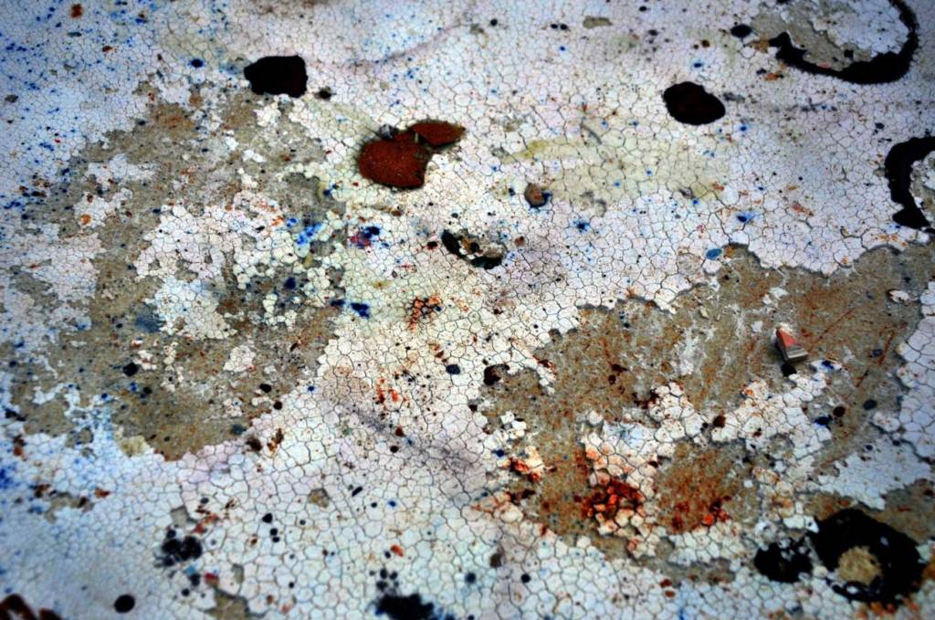 80: JOANNA GEORGIADES – “This is my old studio floor back when I splashed paint around making abstracts. I liked it more than I did my paintings and tried unsuccessfully to recreate it on canvas a few times!”