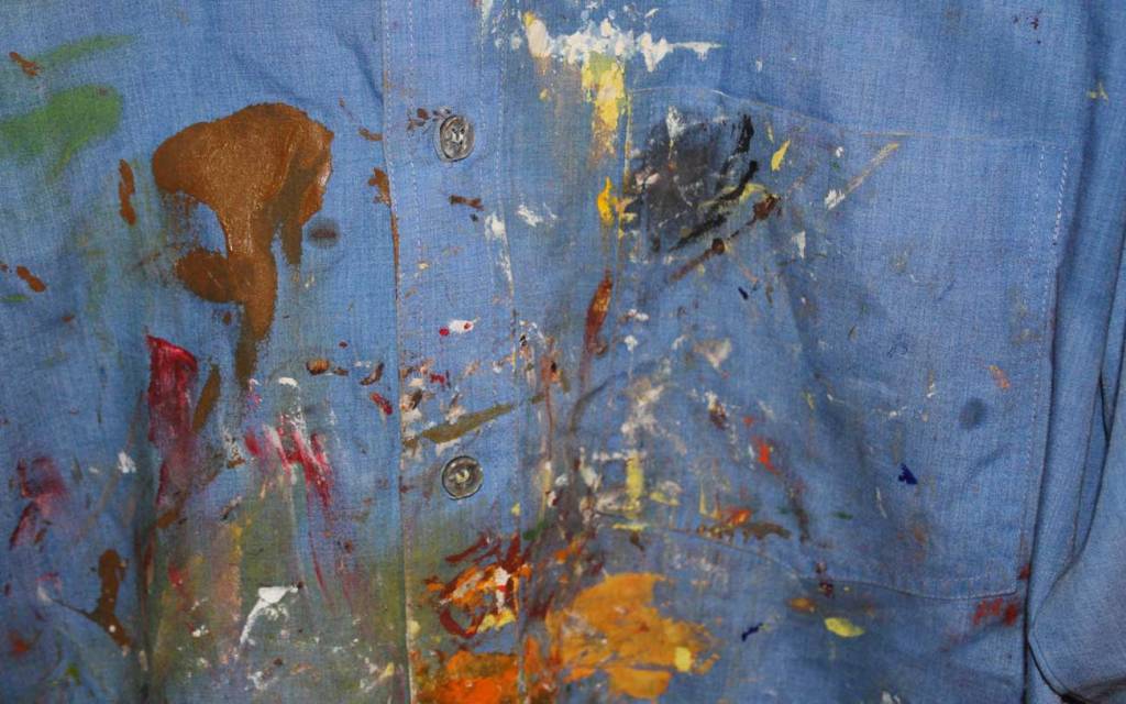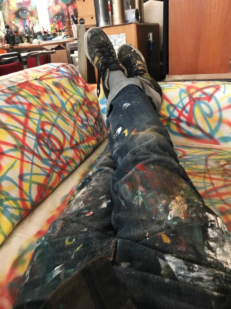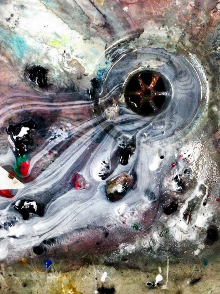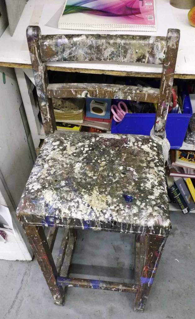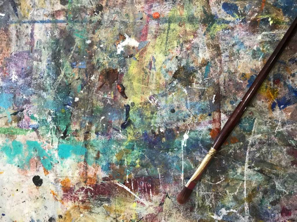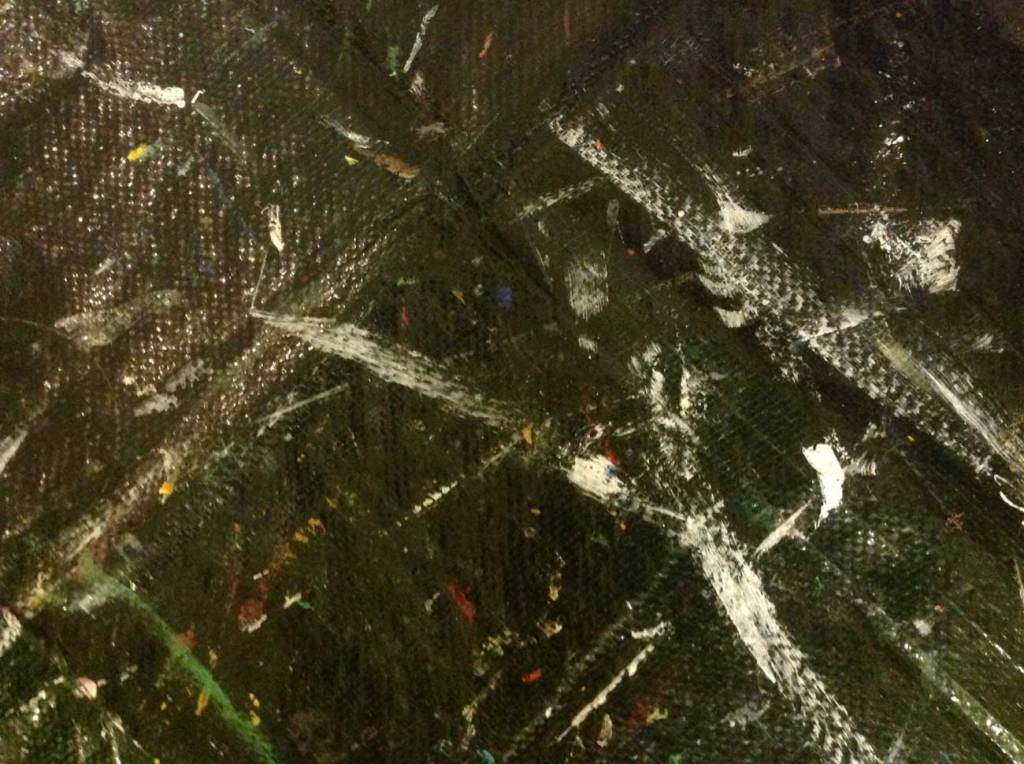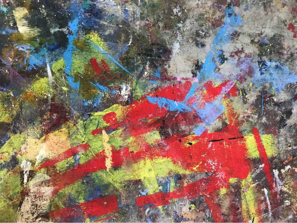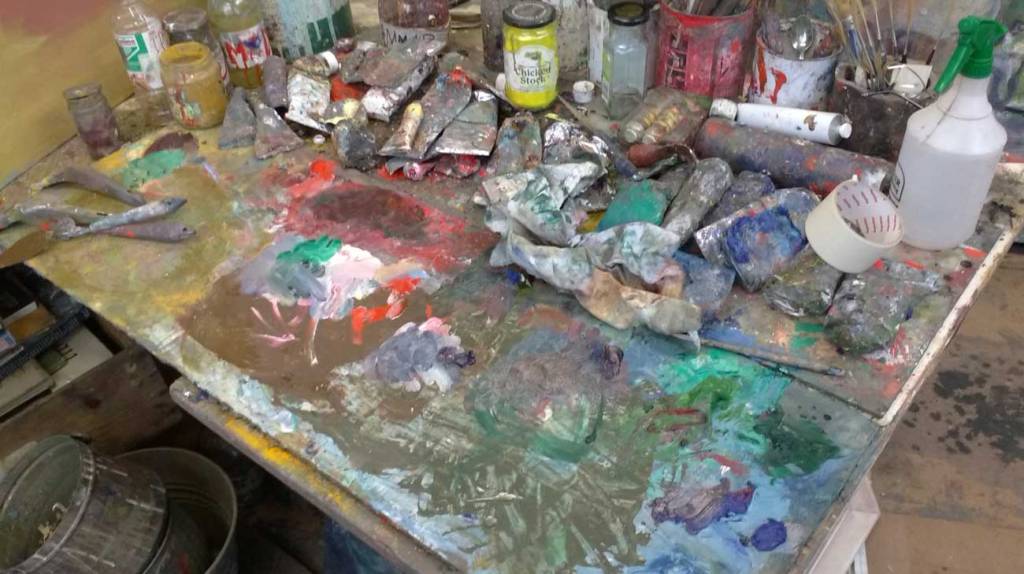80: JOANNA GEORGIADES – “This is my old studio floor back when I splashed paint around making abstracts. I liked it more than I did my paintings and tried unsuccessfully to recreate it on canvas a few times!”
