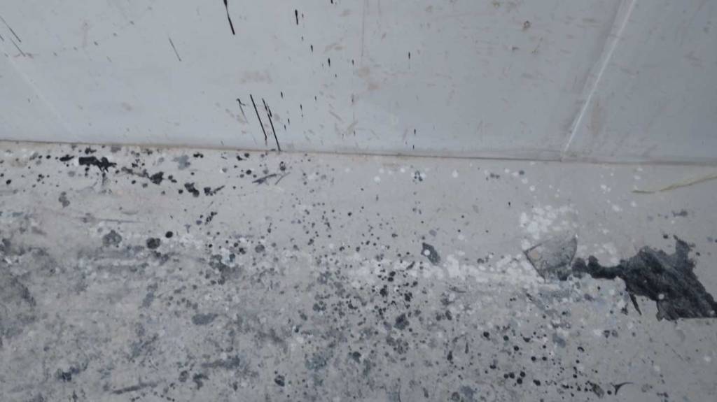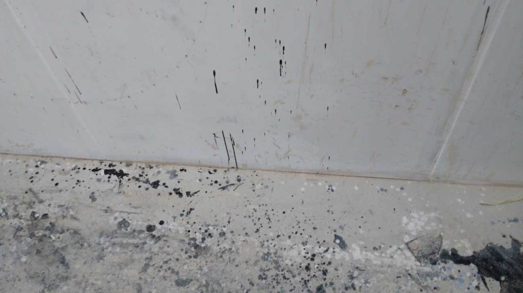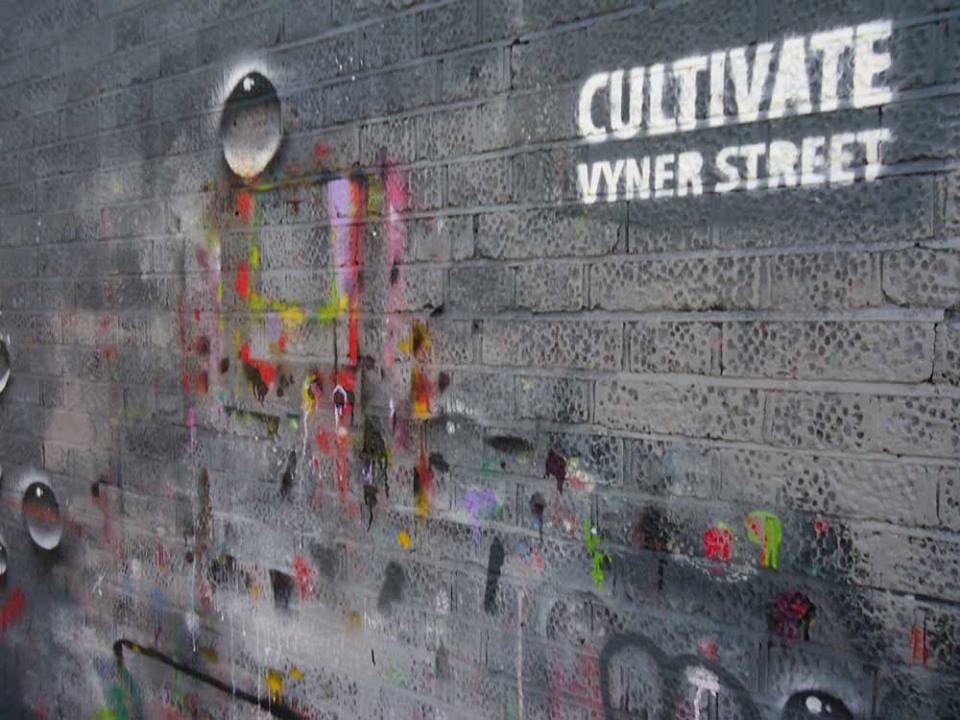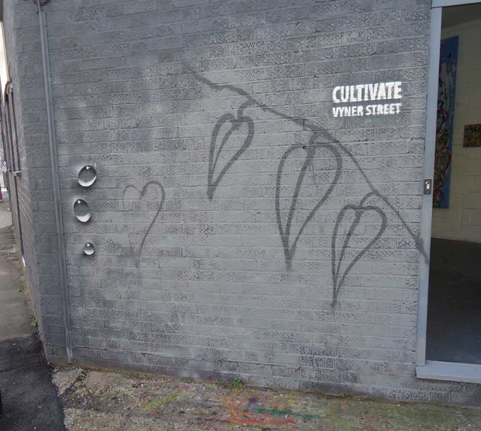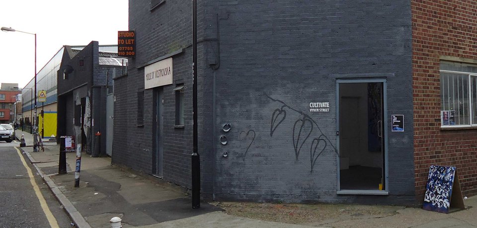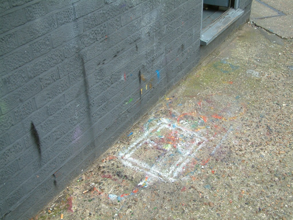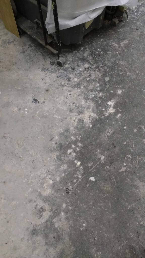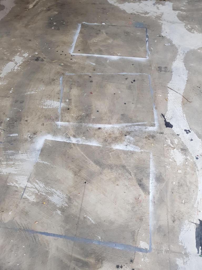 11 – 14: SEAN WORRALL – The outside wall and floor of Cultivate, Vyner Street, the marks where I would paint outside the gallery (and some My Dog Sighs water drops he left there when her took part in a show in the space)