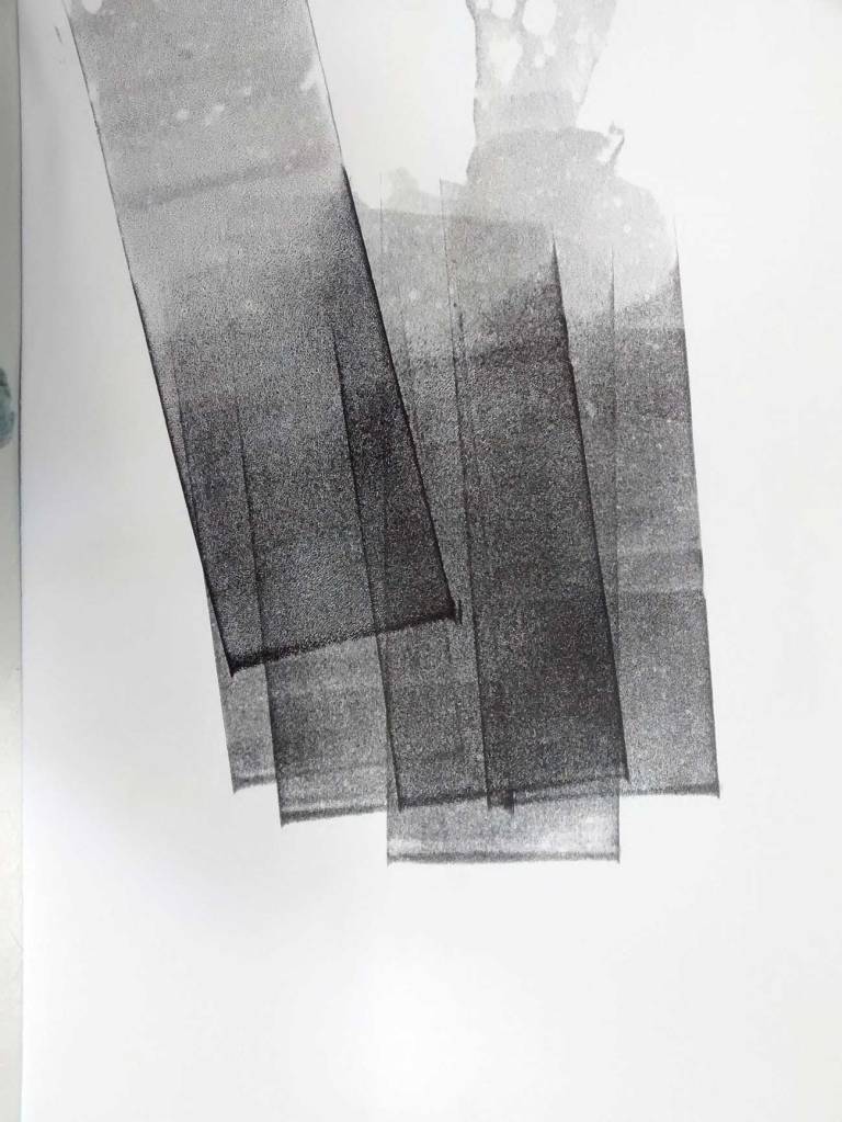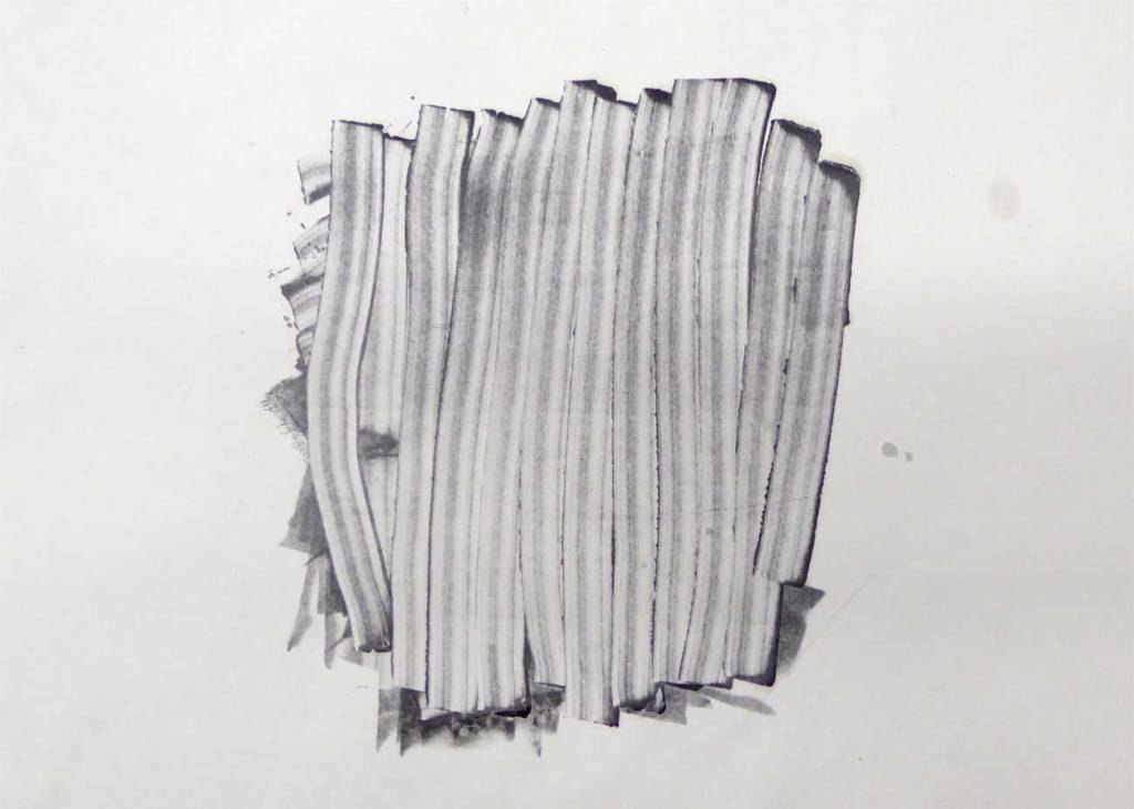 89: JULIE BRIXEY-WILLIAMS – “Marks made by painting wooden piece later used in a wall-based sculpture. I liked the unintentional balance and variety of brushstrokes”. “Julie Brixey-Williams is cross-disciplinary artist and member of The Royal British Society of Sculptors, whose work sits in the space between sculpture and performance exploring the body’s dialogue with architecture and site, through performative intervention, calligraphic gesture and material inscription. Often choosing to work collaboratively, she layers and constructs, lost in the gap between disciplines with a strategy to misapply methodologies and hierarchies as a source of new material forms. She is particularly inspired by the spatial compositions and formalities of Chinese and Japanese calligraphic painting.”.