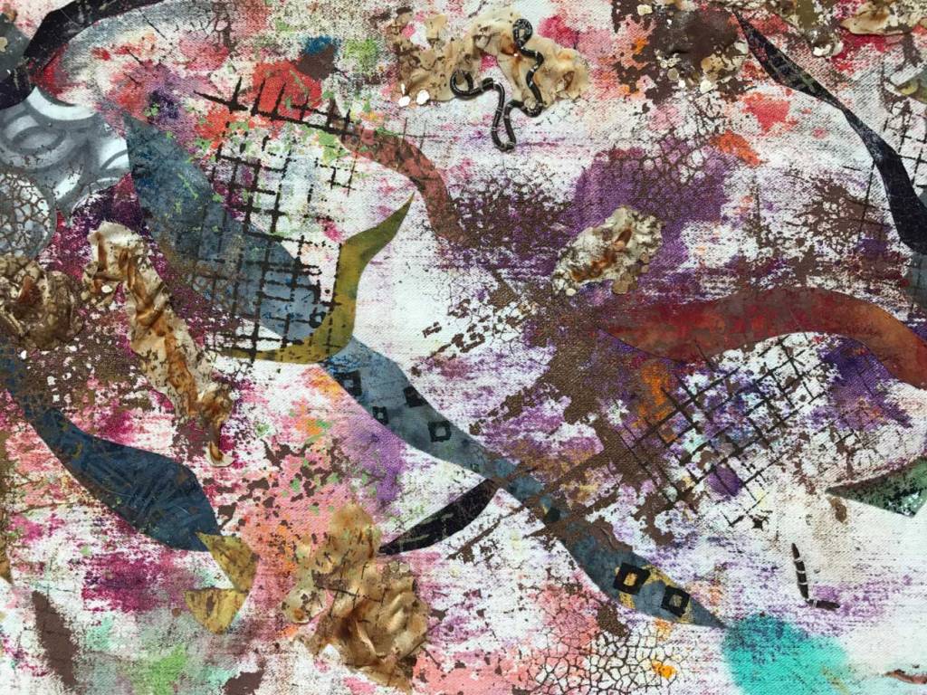 20 – 26: DONNA POINGDESTRE – “Donna Poingdestre is a Portsmouth-based painter and mixed media artist, specializing in abstract acrylic portraits and collages. Known for producing detailed work on a broad variety of surfaces and her strong sense of emotion, movement and colour portrayed in her pieces, Donna is a member of the Fire Monkeys art collective and an active participant in gallery events at Play Dead studios. She enjoys street art festivals, long windy walks with her border collie, and creating art of all forms in everyday life”.