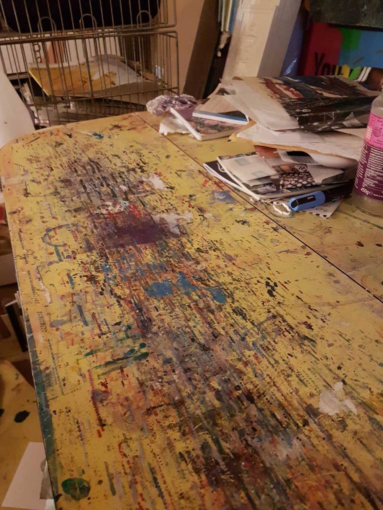 9: BETH BARLOW – “This table was new once. After being a base for oil painting sticking, glueing and jewellery making its much more me”