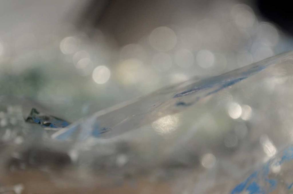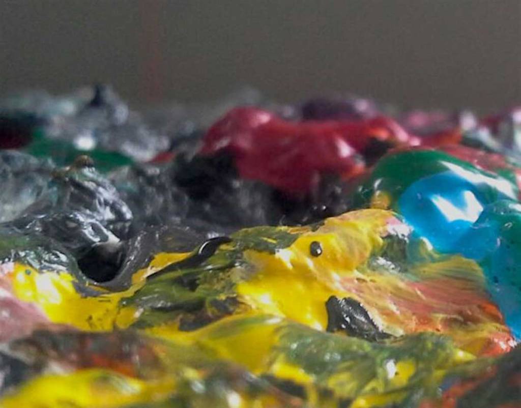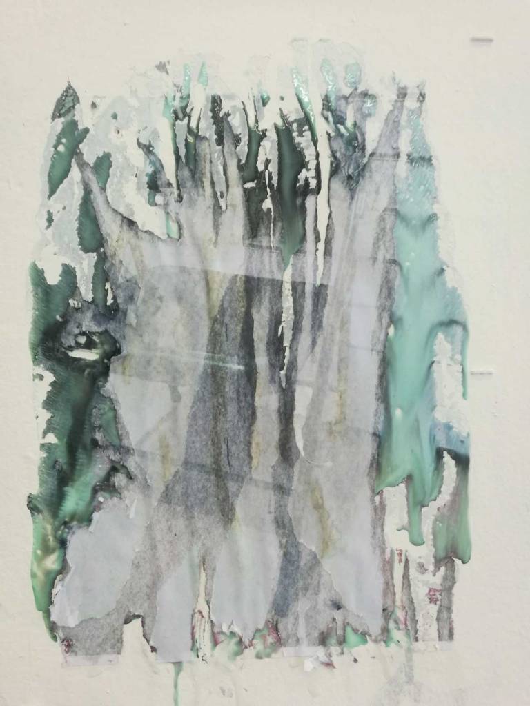 53 – 55: FFION PRITCHARD – “A series of photographs showing the paint splattered piece of cling film that projects my desk”
