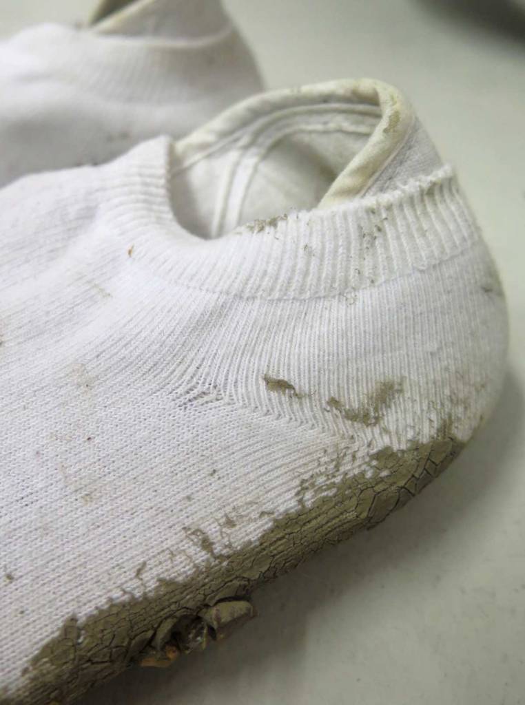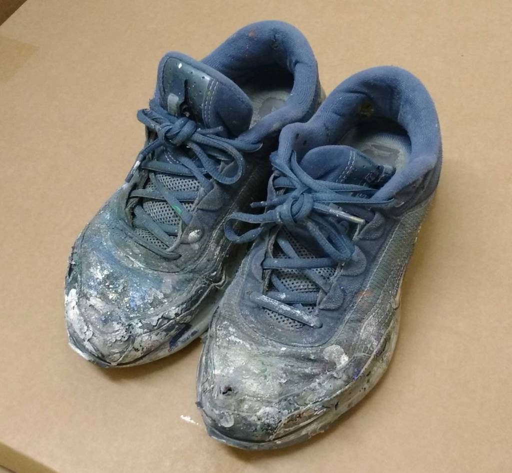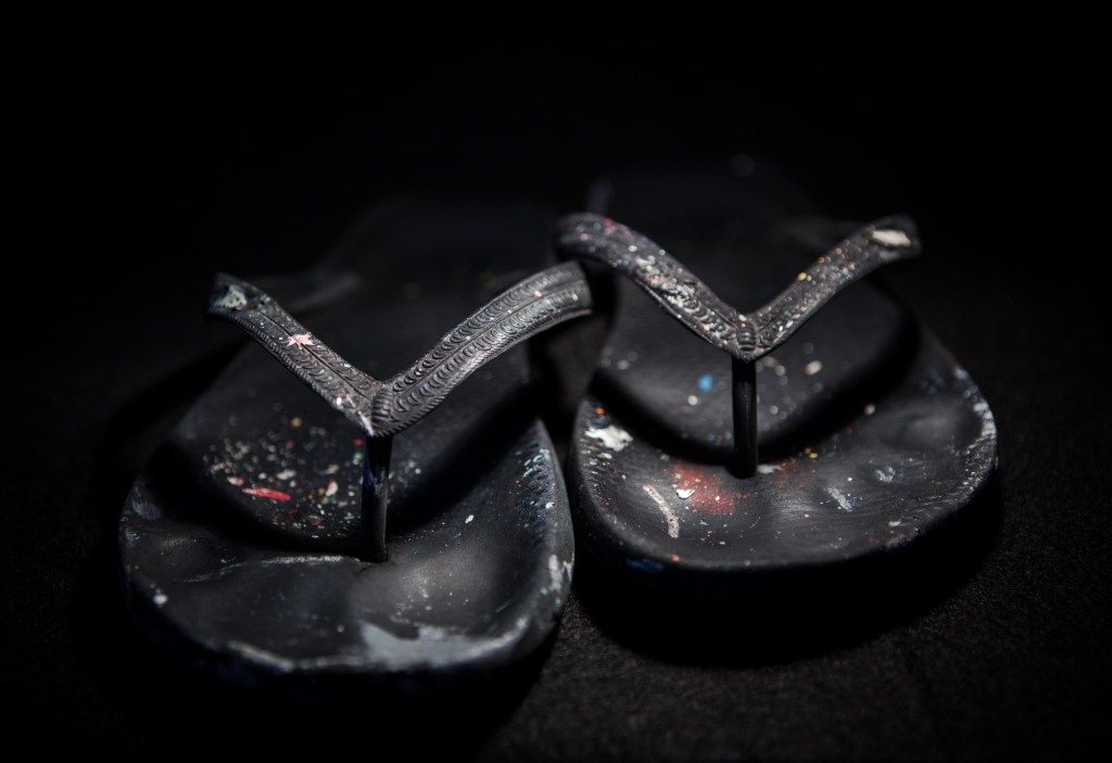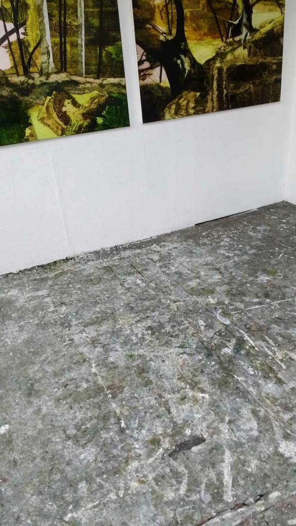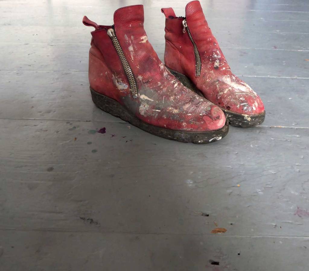 214: SEAN WORRALL  – “My working boots, the worn out Cultivate Gallery floor, once freshly painted, work from all the feet of the people who came ot see the shows down Vyner Street before they knocked the building down”