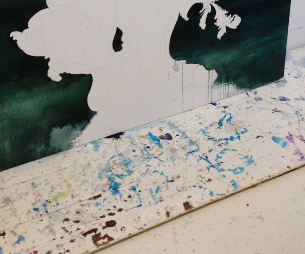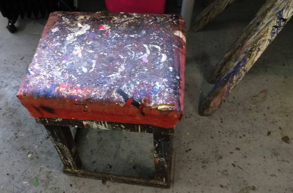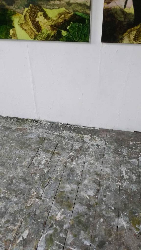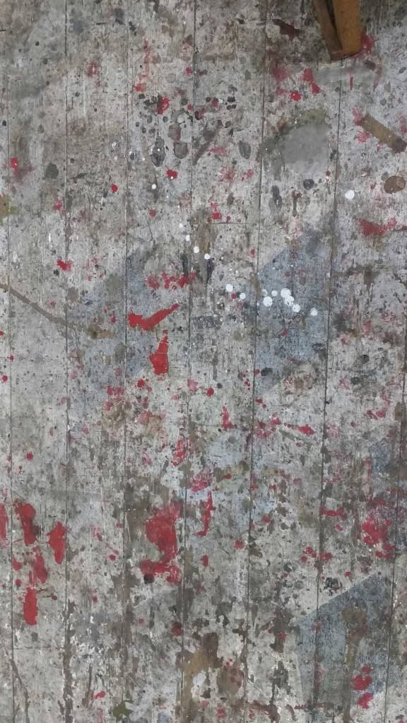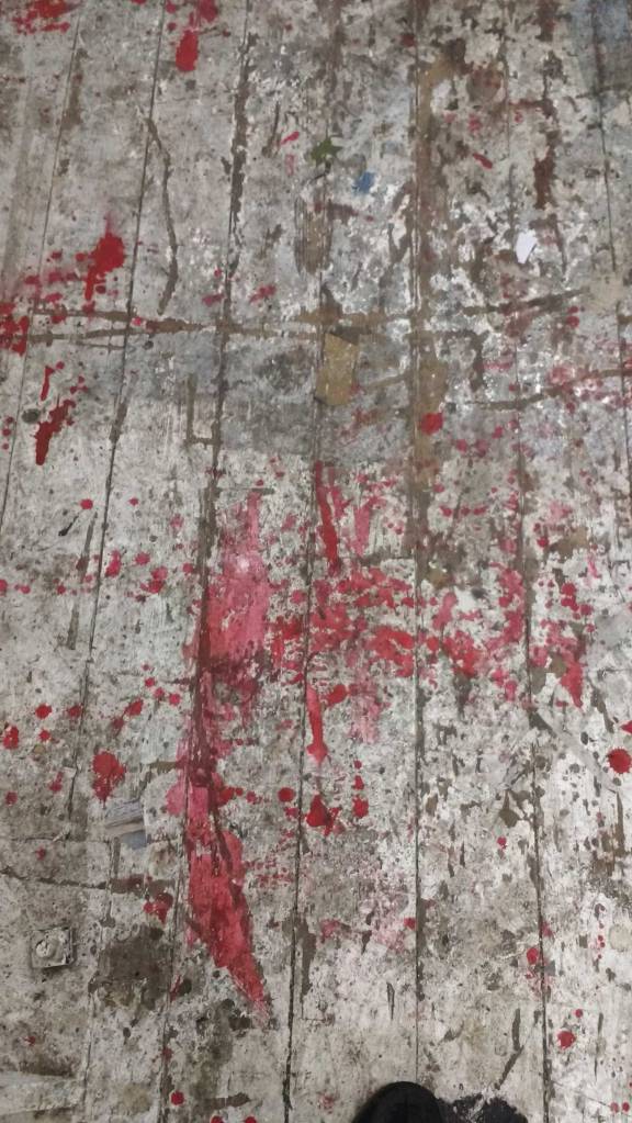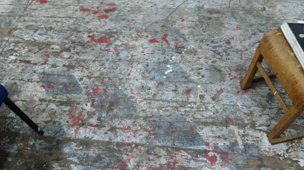THE (ACCIDENTAL) MARKS MADE WHILE MAKING ART – The accidental marks made while making art are always intriguing, the floors of artist’s studios, their boots or dresses or shirts, the outside wall that a canvas might have been propped against while being painted on. The photographs of studio floors, paint covered boots, colour-encrusted easels, old paint brushes, painting tables, painting marks, all those beautiful marks artists (accidentally) make while making art. We didn’t want photos or images of the actual art the artists make, we wanted the accidental marks made as a result of making art, we wanted that stain on the studio floor, the photos of old brushes, the marks left once the performance is over. These are the images selected from the submissions submitted via an open call as well as gathered by us on our fractured phones while exploring artist studios.