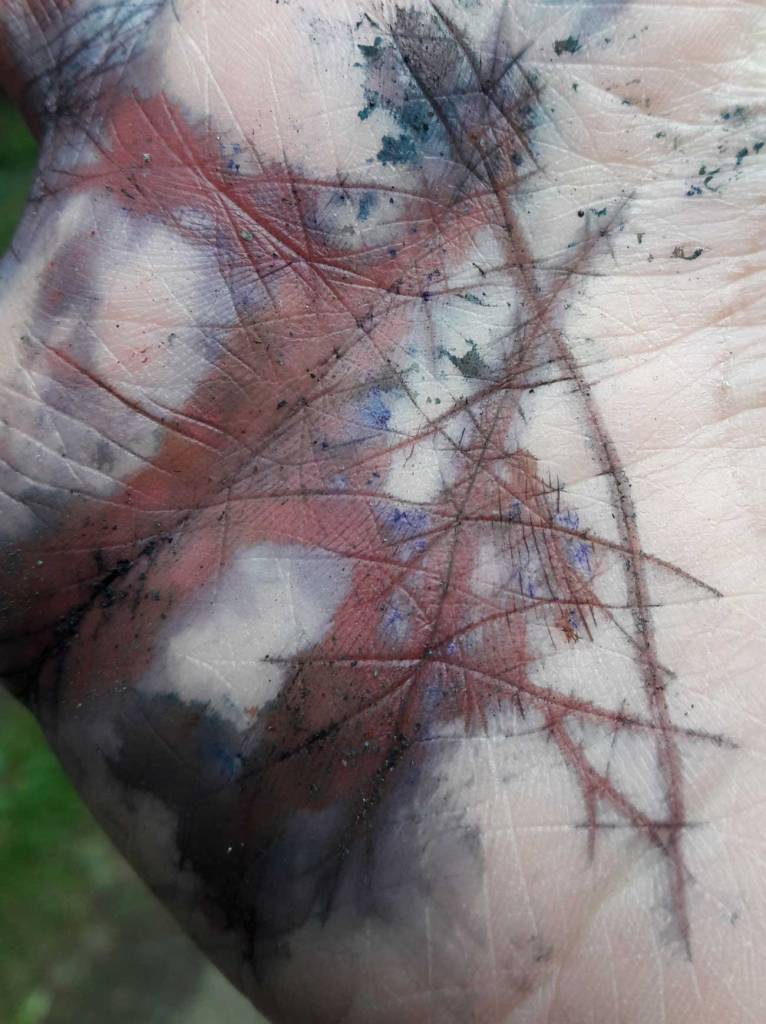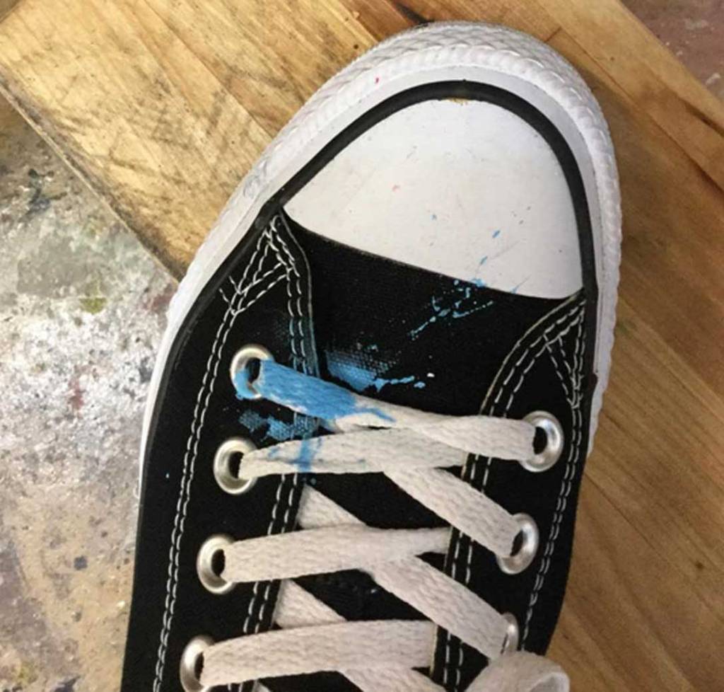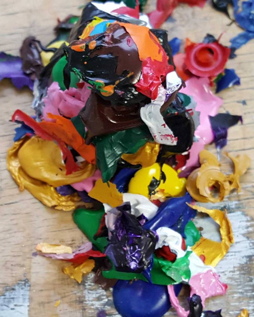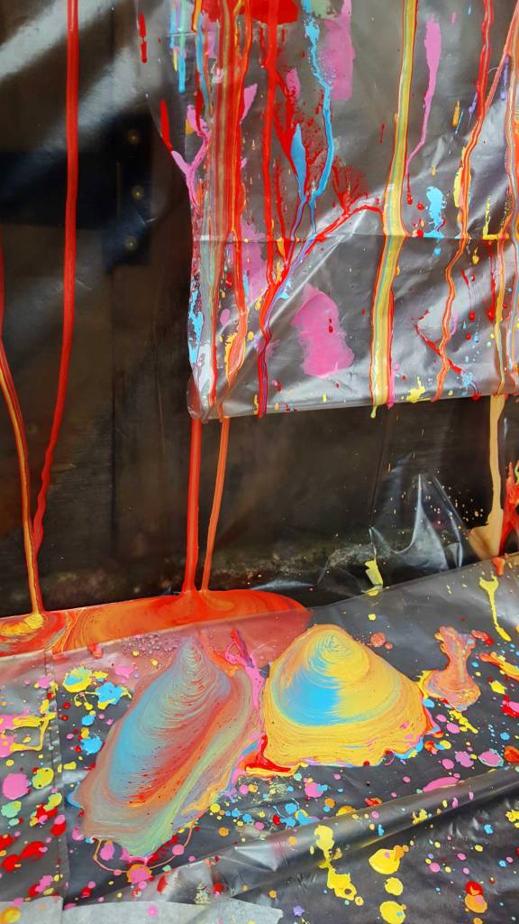 THE (ACCIDENTAL) MARKS MADE WHILE MAKING ART – The accidental marks made while making art are always intriguing, the floors of artist’s studios, their boots or dresses or shirts, the outside wall that a canvas might have been propped against while being painted on. The photographs of studio floors, paint covered boots, colour-encrusted easels, old paint brushes, painting tables, painting marks, all those beautiful marks artists (accidentally) make while making art. We didn’t want photos or images of the actual art the artists make, we wanted the accidental marks made as a result of making art, we wanted that stain on the studio floor, the photos of old brushes, the marks left once the performance is over. These are the images selected from the submissions submitted via an open call as well as gathered by us on our fractured phones while exploring artist studios.