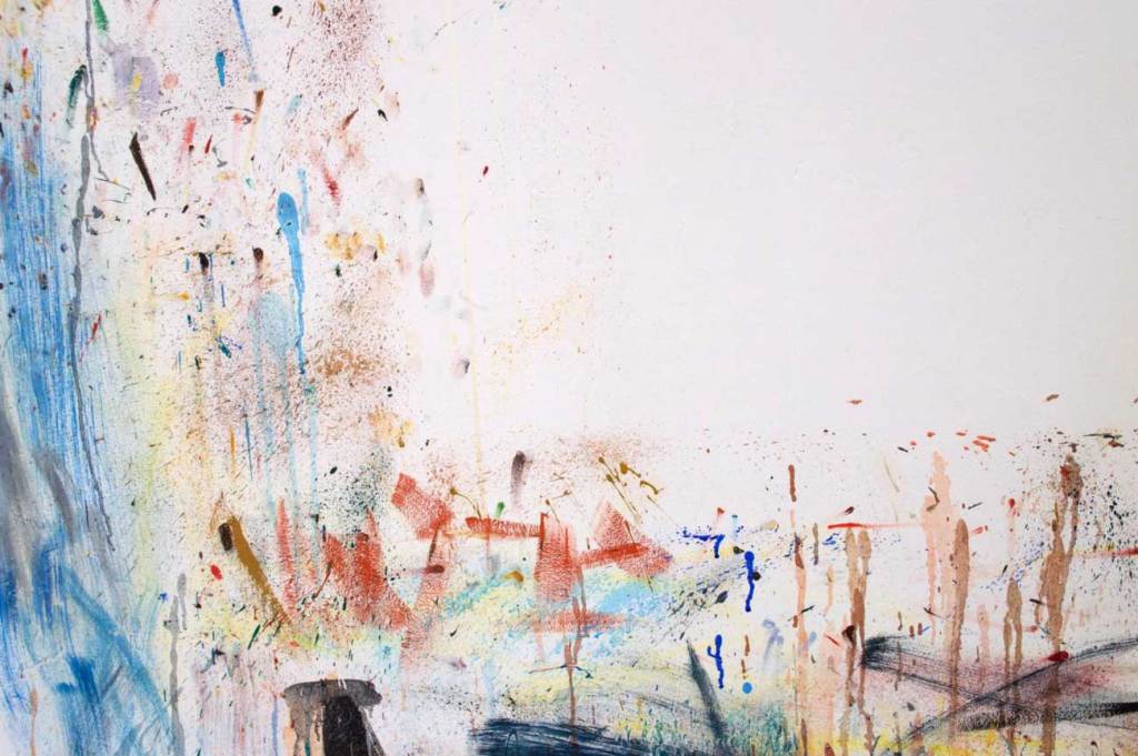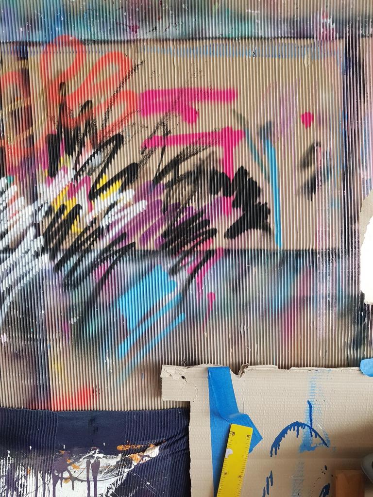 166: WAYNE SLEETH – “A British painter based in France, exhibiting regularly in Europe and the UK, l changed direction mid-career in my approach to painting, for the last three years avoiding the modernist clutter of paintbrushes and palettes, and working my canvases with spraypaints and markers, revisiting traditional inspirations such as Monet’s work in a more ‘urban’ vein. Working on the floor in my studio in the east of France, the marks accumulate, echo, reflect something of what remains of the finished piece”.