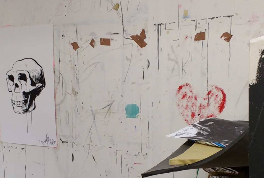 180: DOYLE AND MALLINSON – A photograph of Doyle and Mallinson’s studio wall, Martello Street Studios, Hackney, 2017.