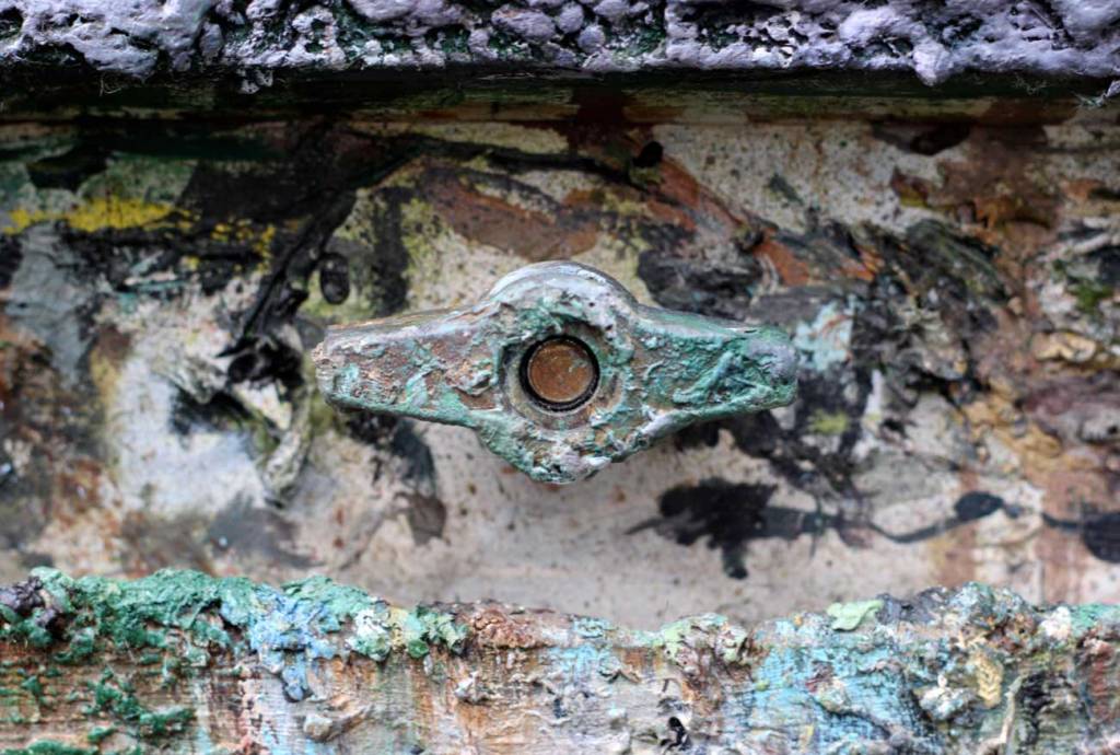 2 – 6: ANDREW HORNETT – Andrew Hornett’s studio floor. “Andrew Hornett is a versatile practicing artist with a penchant for gathering and creating from the urban detritus caused by society’s continuous trudge… He builds emotionally stirring works elevating discarded materials that would otherwise be destined to be ignored, unnoticed, unappreciated…unloved… My studio is primarily a large walk-in Lego box…constantly changing as bits and pieces are dragged around into new positions… Aside from being an historical record of my practice over the years, the marks, scratches, stains, and the images seen here always play a great role inspiring and dictating the layout and form of work still to come…