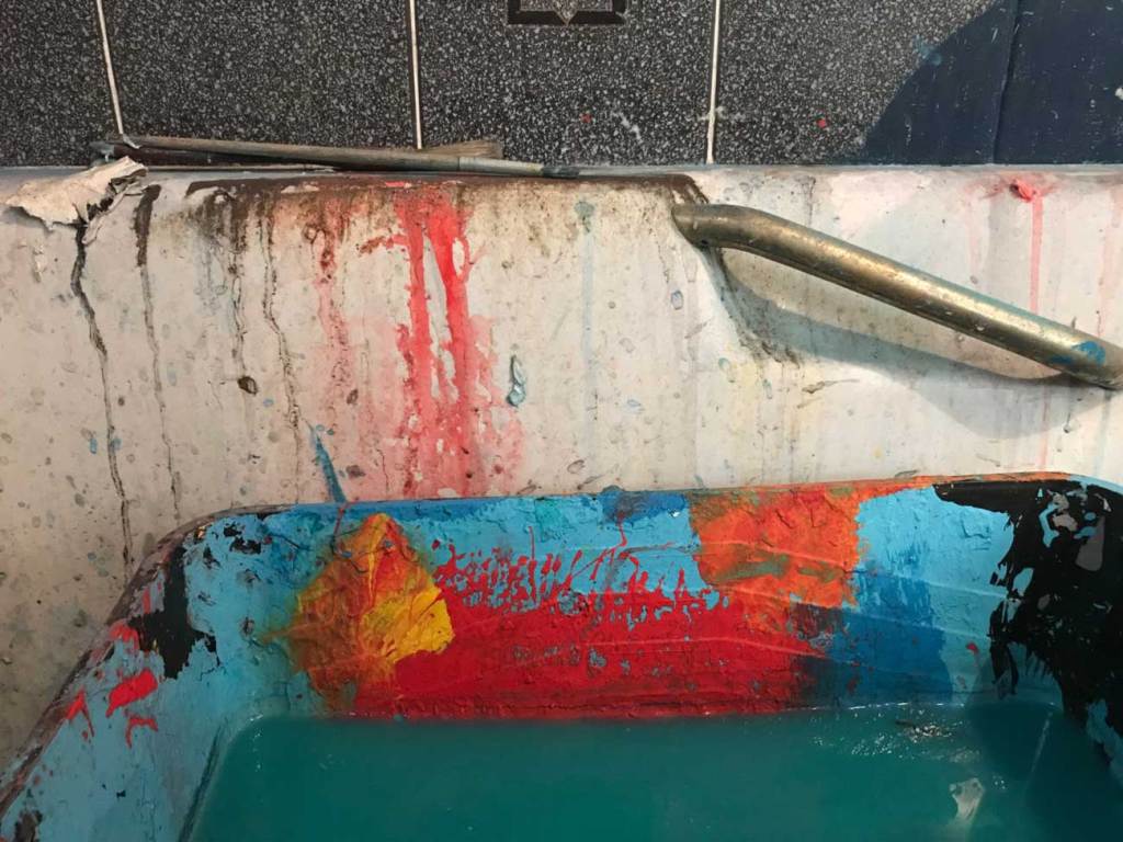 215 – 219: PACKERART – PackerArt is the name Kirsty Packer works under, “I currently work as an art technician. I have seen the art rooms as a way for my own continued practice development. Often I have photographed the marks left by students. What you will see in the photo’s are sometimes how sinks have been left, marks of pots, brushes, palettes including finger marks on aprons”.