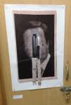 And meanwhile back down one of the many concrete staircases you find Peter Kennard, if you don’t know Peter Kennard then you almost certainly do know, in these social media fueled days, his powerful imagery, you’ve almost certainly seen his Blair Selfie, a 2003 photomontage “Photo Op”, of Tony Blair taking a selfie against a backdrop of burning oil, a piece that was described by The Guardian as “the definitive work of art about the war”. The delightfully friendly man is, according to Wikipedia, a “London born and based photomontage artist and Senior Research Reader in Photography, Art and the Public Domain at the Royal College of Art, Seeking to reflect his involvement in the anti-Vietnam War movement, he turned from painting to photomontage to better address his political views. He is best known for the images he created for the Campaign for Nuclear Disarmament (CND) in the 1970s–80s including a détournement of John Constable’s Hay Wain called “Haywain with Cruise Missiles“. Because many of the left-wing organisations and publications he used to work with have disappeared, Kennard has turned to using exhibitions, books and the internet for his work. Kennard has work in the public collections of several major London museums and the Arts Council of England. He has his work displayed as part of Tate Britain’s permanent collection and is on public view as part of 2013’s rehang A Walk Through British Art” – Yes I know cribbing from Wiki is damn lazy, but hey, needs must and I wonder if the studio always looks this cleaned up and organised. There more of those brilliant accidental marks made while making art that we can’t resist, look at that floor, brilliant, and that well worn CND logo there on ther wooden floor, and those red marks there – another group of people enjoying conversations and exchanging tales about art and print and the politics of creativity, you see that’s really one of the great things about these open days, you really can just walk in and join in the chat in most cases and in most cases people are so so friendly and welcoming )Ms I want to the Rotal College really was the rare exception), again and again we’re thanked for coming, for taking an interest – most artists are more than happy to talk, to answer questions, to ask questions. And we must mention Robyn’s excellent paintings, powerfully brilliant work, the hopeful innocence of youth, “don’t’ fite, be friends instead”