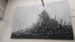 Behind Walid Siti‘s small studio door there’s something really special to be found, you ca nhear people’s reactions as they walk in and look up to the big painting high on his wall – more powerful paintings, big paintings alongside pieces of installations old and new, and more wonderful marks studio marks and scars on the floor – you get to see so much in terms of the artist’s working process, their personalities, their thought processes they maybe you aren’t sure they want you to see, you almost want to appolgise for invading their private spaces even if it is the point of the wekeend/ A quick on-line search tells us Walid Siti was born in 1954, in the city of Duhok, in Iraqi-Kurdistan, he’s one of the artists on lists advertising studio open days happening here back in the 1990’s, he’s a pleasure to talk to – actually everyone in here is, no Ms “I went to the Royal College, don’t bother me” types this week! How unpleasant was she, what an awful woman – a pleasure to talk to people in here today, and these lines and towers and constructions are really something to excite, “The work of Walid Siti traverses a complex terrain of memory and loss, while at the same time offering an acute insight into a world, which for him has been a place of constant change”, especially powerful with all those construction site cranes outside his studio window just beyond the lines and wires of the railway line – “The narrative of Siti’s experience, of a life lived far from but still deeply emotionally connected to the place of one’s birth, is one he shares with many exiles. Siti takes inspiration from the cultural heritage of his native land that is crisscrossed with militarized borders and waves of migration”. it is really hard to pin down the excitement of encountering an artist in his or her almost secretive studio world, the spaces where they agonise over their creativity rather than in the galleries where they present the prestine bits they choose to show – “home-made ladders, objects from a simpler time, become metaphors for those who, shifting from a familiar past to an unknown future”, being in Walid Siti’s personal private space is something to treasure, I must confess I’d never heard of him before.
