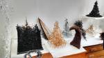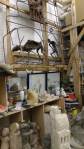 Kimberley Bennett‘s studio is crammed with ceramics, with sculpture, with so many things demanding your attention, exceptional pieces almost lying around underneath things, exciting pieces of art here, there and everywhere in amongst the studio junk and the raw material that looks like it might have been hanging about for years waiting to be included in one of her impressive pieces. She says she doesn’t exhibit much now, someone needs to come in here and pull out a dozen or so pieces and get them on plinths in a white-walled space