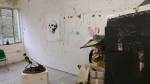 Upstairs at the very top of the building (are we at the top of the building now? Such a warren in here, have we been along this corridor and up these stairs already?), up at what we think is the top of the building, the duo that are Doyle and Mallinson are drawing and casting smaller scale hominid skeletons that are probably parts of bigger installations – “during their collaboration over the last ten years, artists Shaun Doyle and Mally Mallinson have developed a reputation for their iconoclastic humour and vivid large-scale installations”.