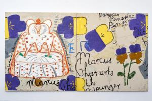 Rose Wylie, Queen with Pansies (Dots), 2016